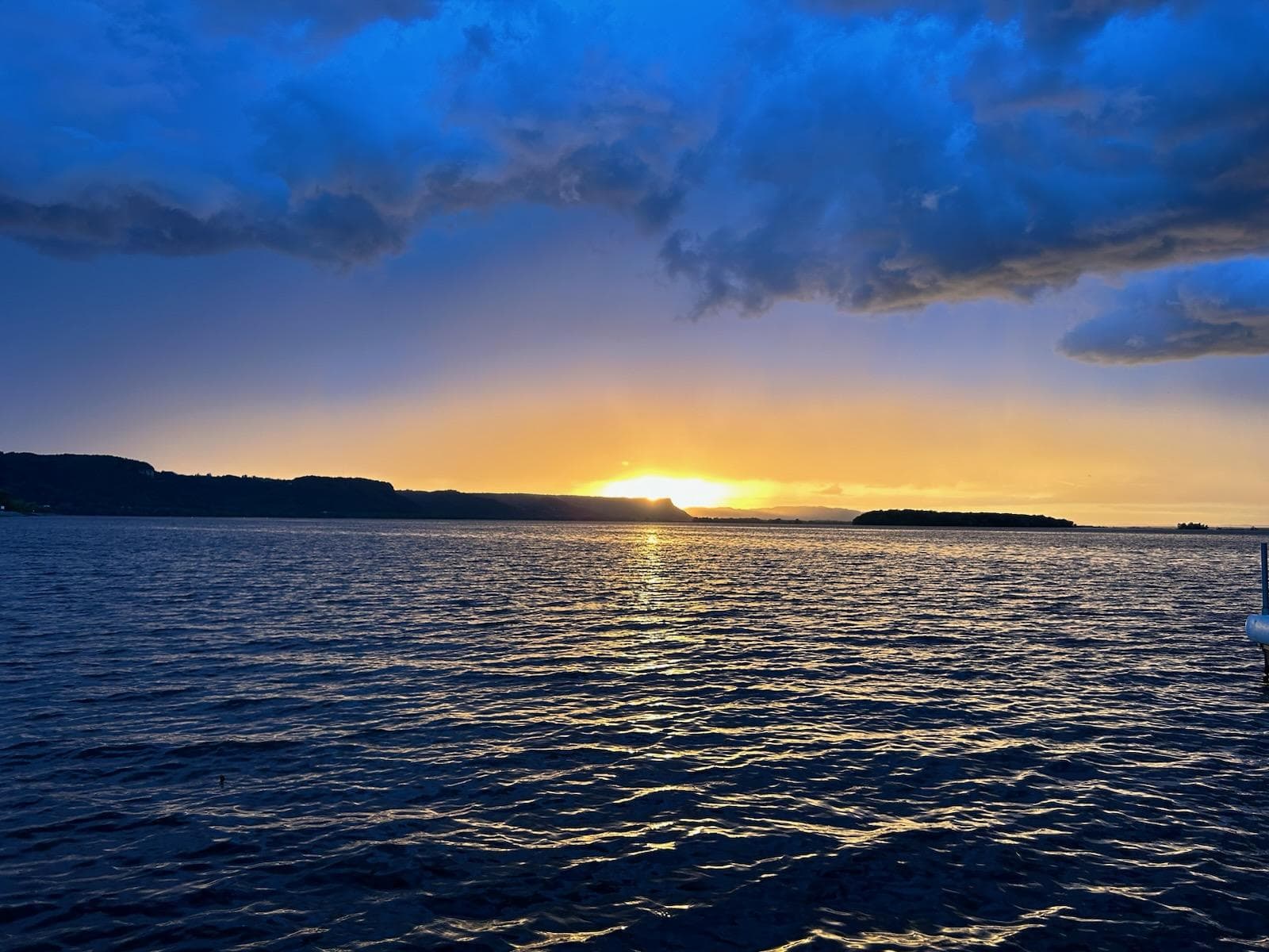 Looking west at the Minnesota bluffs. Dying storm cell came right thru this area as the sun was setting this evening. A+ weather today with lower humidities and mild temps. Rains missed us most of the day so we got lucky. Cool Canadian high pressure rules until next week.