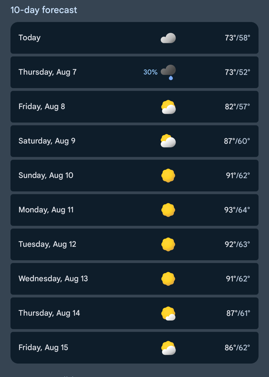 at least it isn’t boiling hot this August so far. 80s mostly. the few cool nights are a bit early.