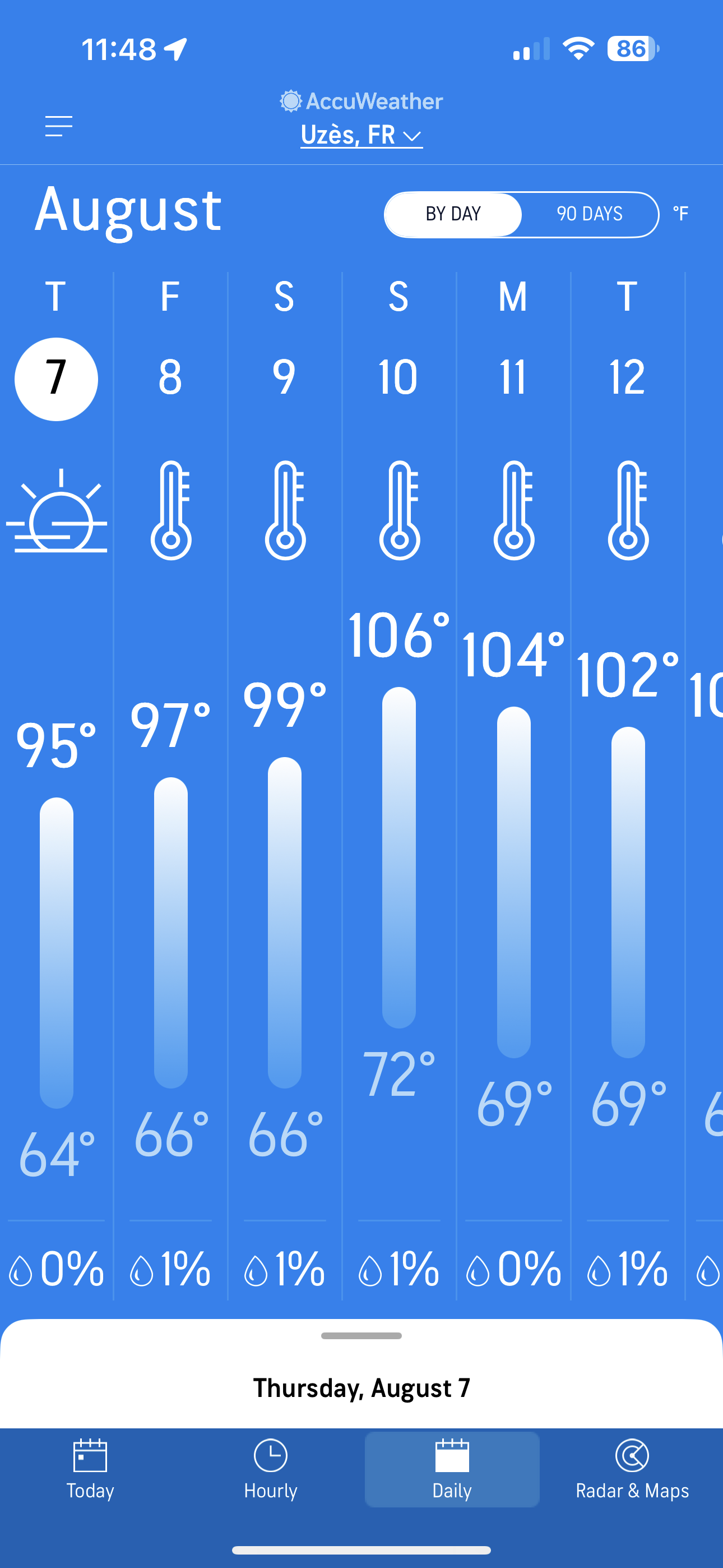 Back in Uzès, France, climbing into the high nineties again! Very oppressive.