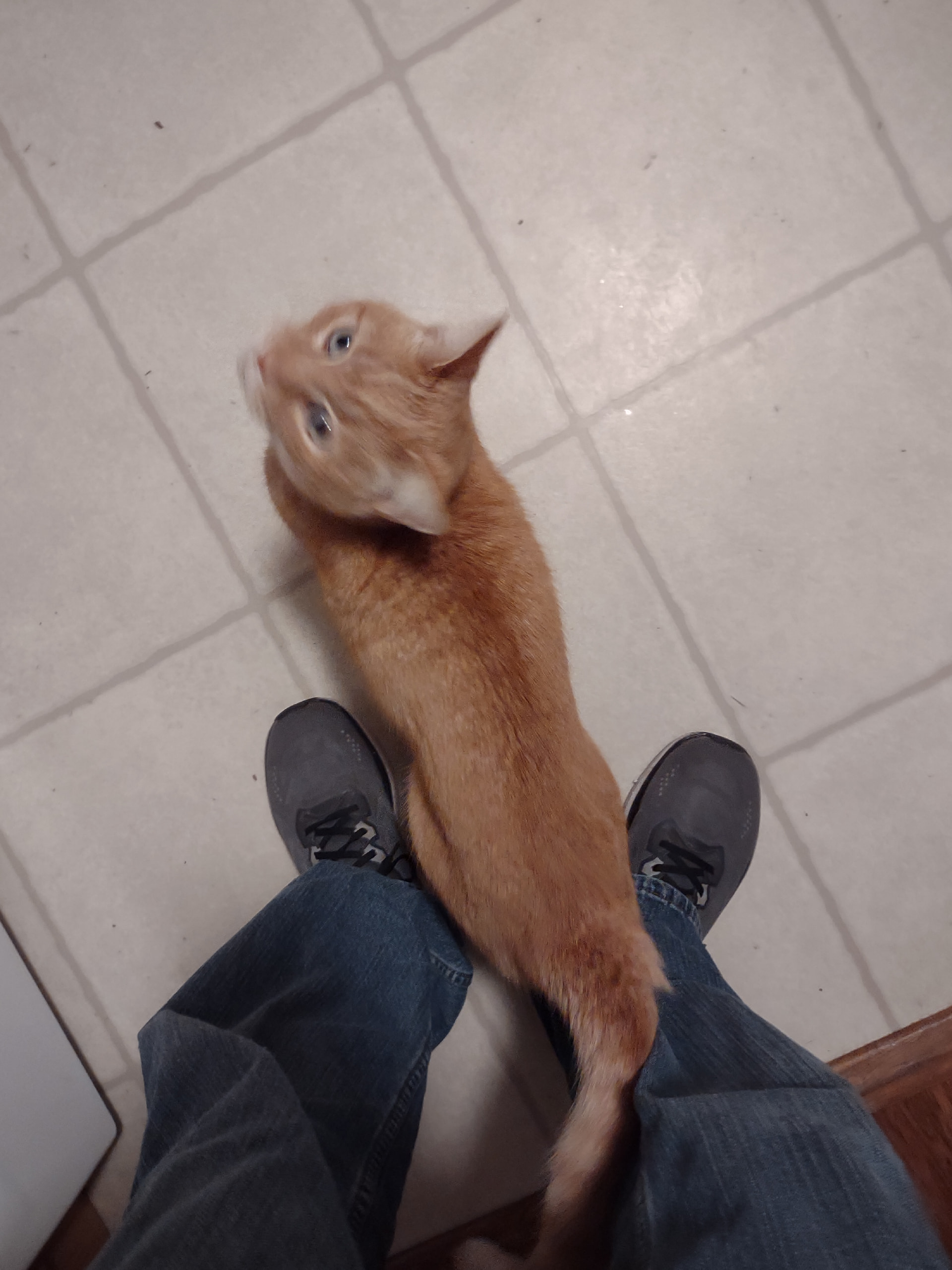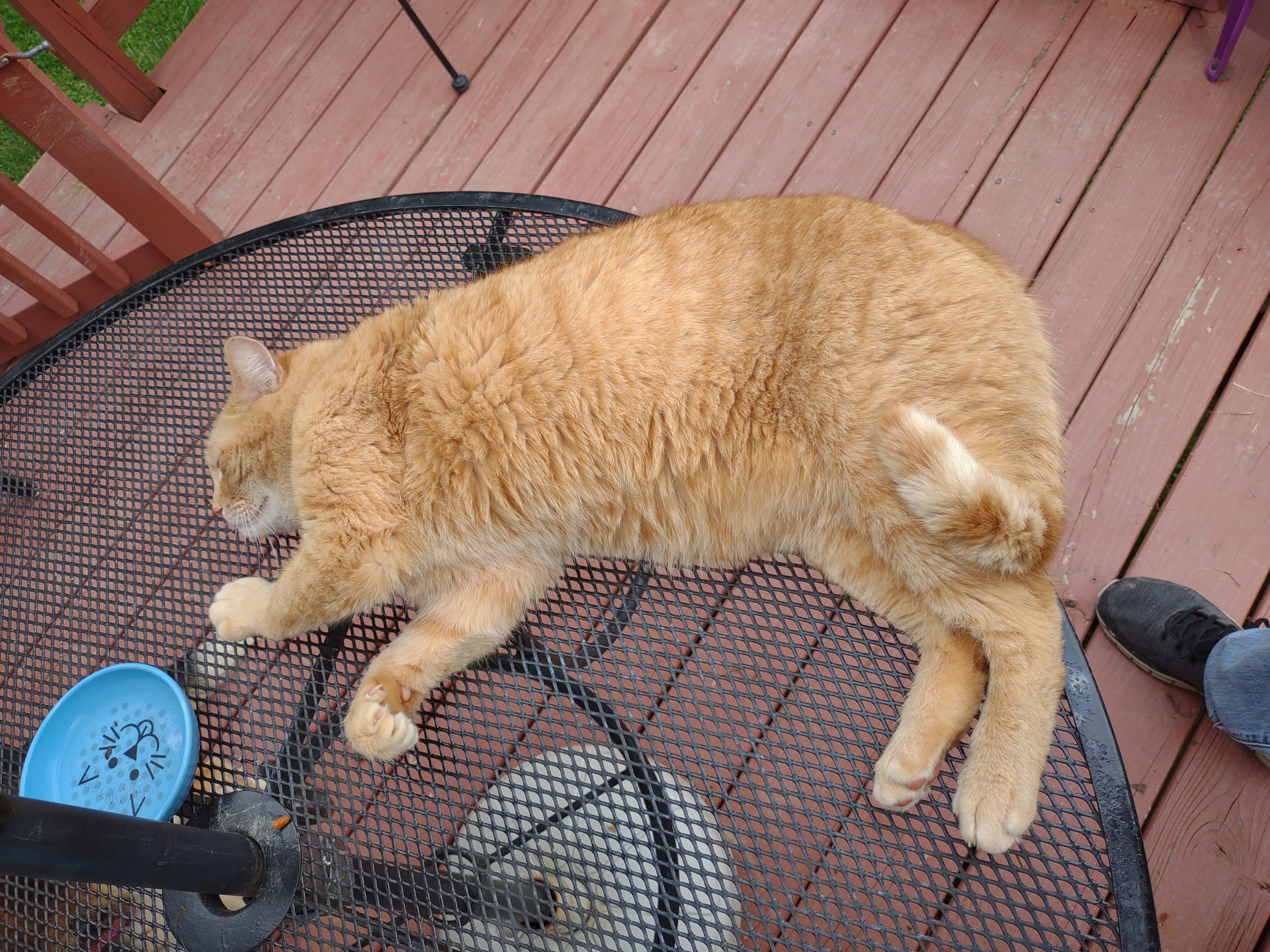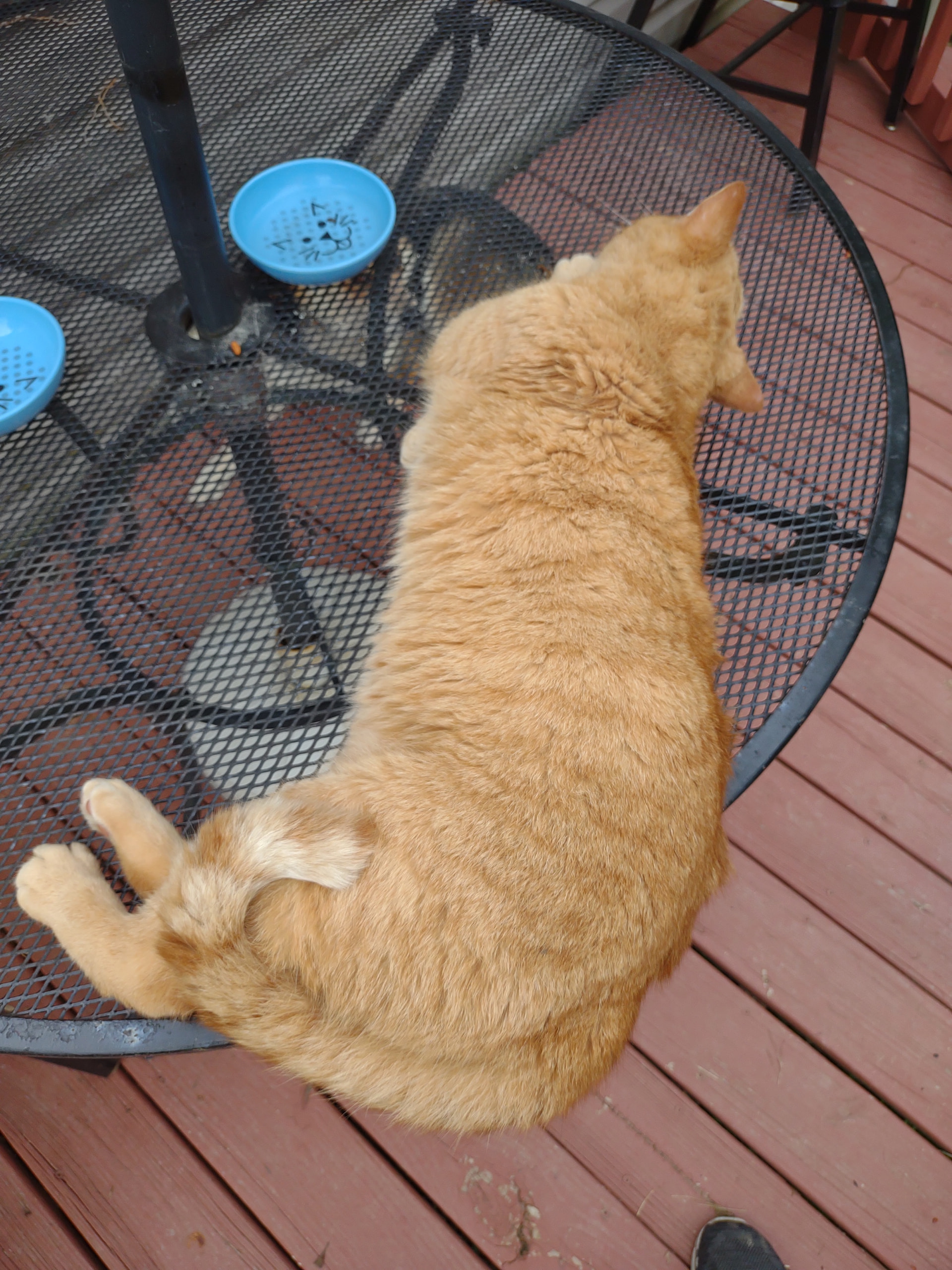 He was quite chubby when we got him, he spent his former life in an shed and got fed twice a day. We feed him once a day because he’s a good hunter and doesn’t need as much kibble.