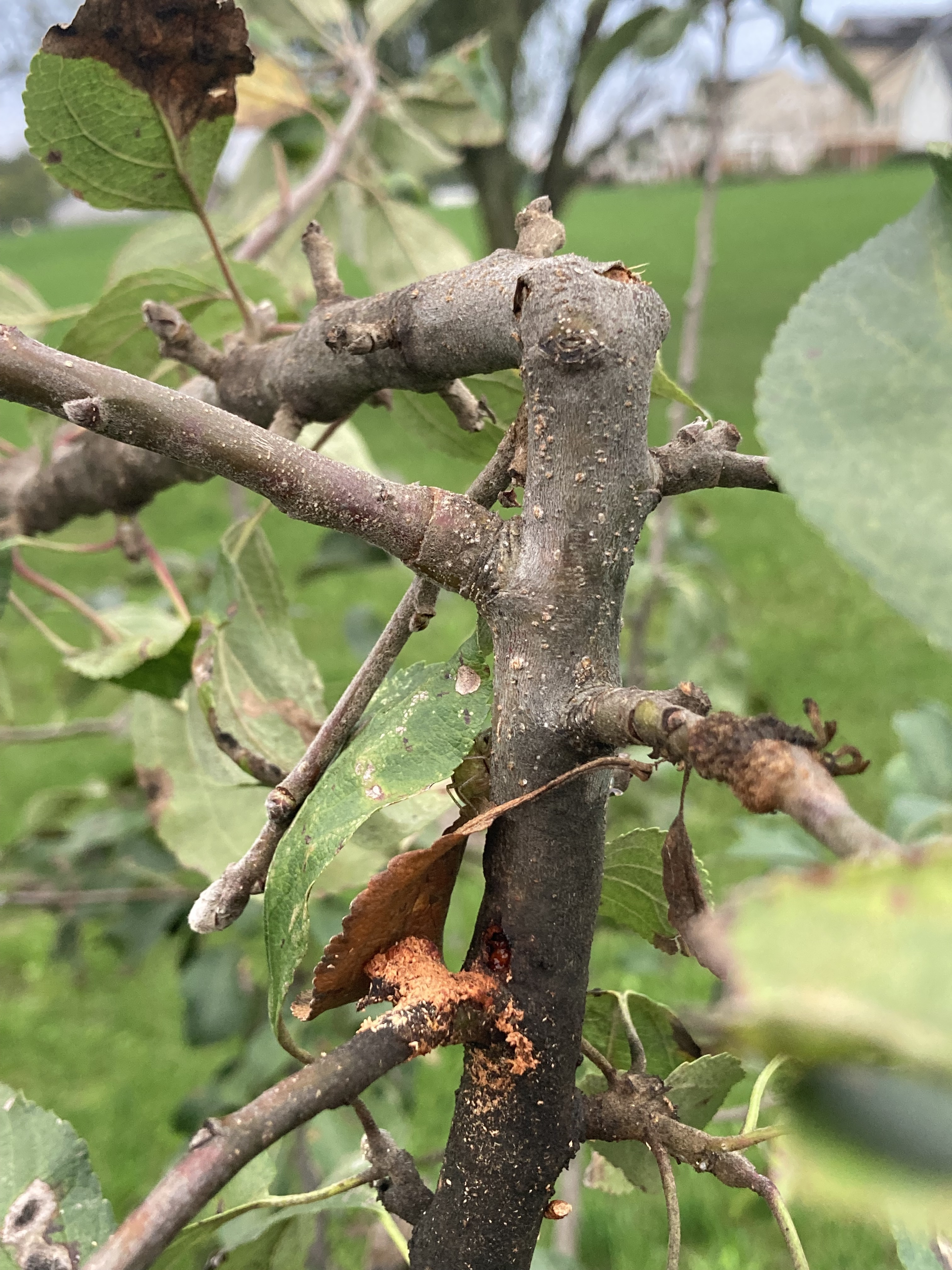 Found the central leader on a 2 yr old apple fallen over about 3 feet from the top. Upon closer inspection a borer made its way into the stem and hollowed out a 6in section. How can this be prevented? Thanks for any help.