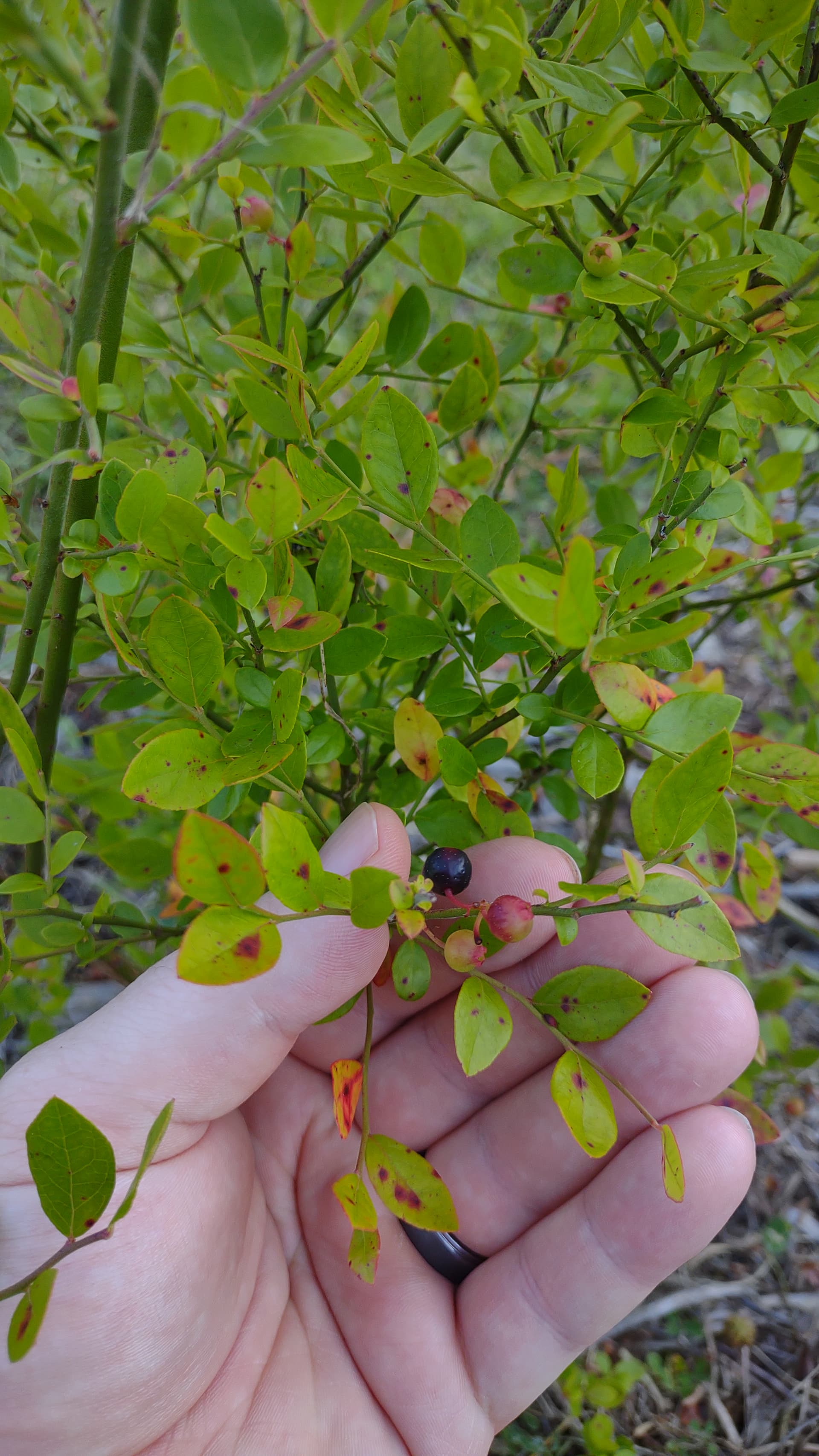 I can eliminate at least a dozen species based on visual traits and flavor of the berries. I’ve seen plenty of highbush blueberries in the course of traveling for many years for my job. These don’t match my expectation for highbush blueberries.