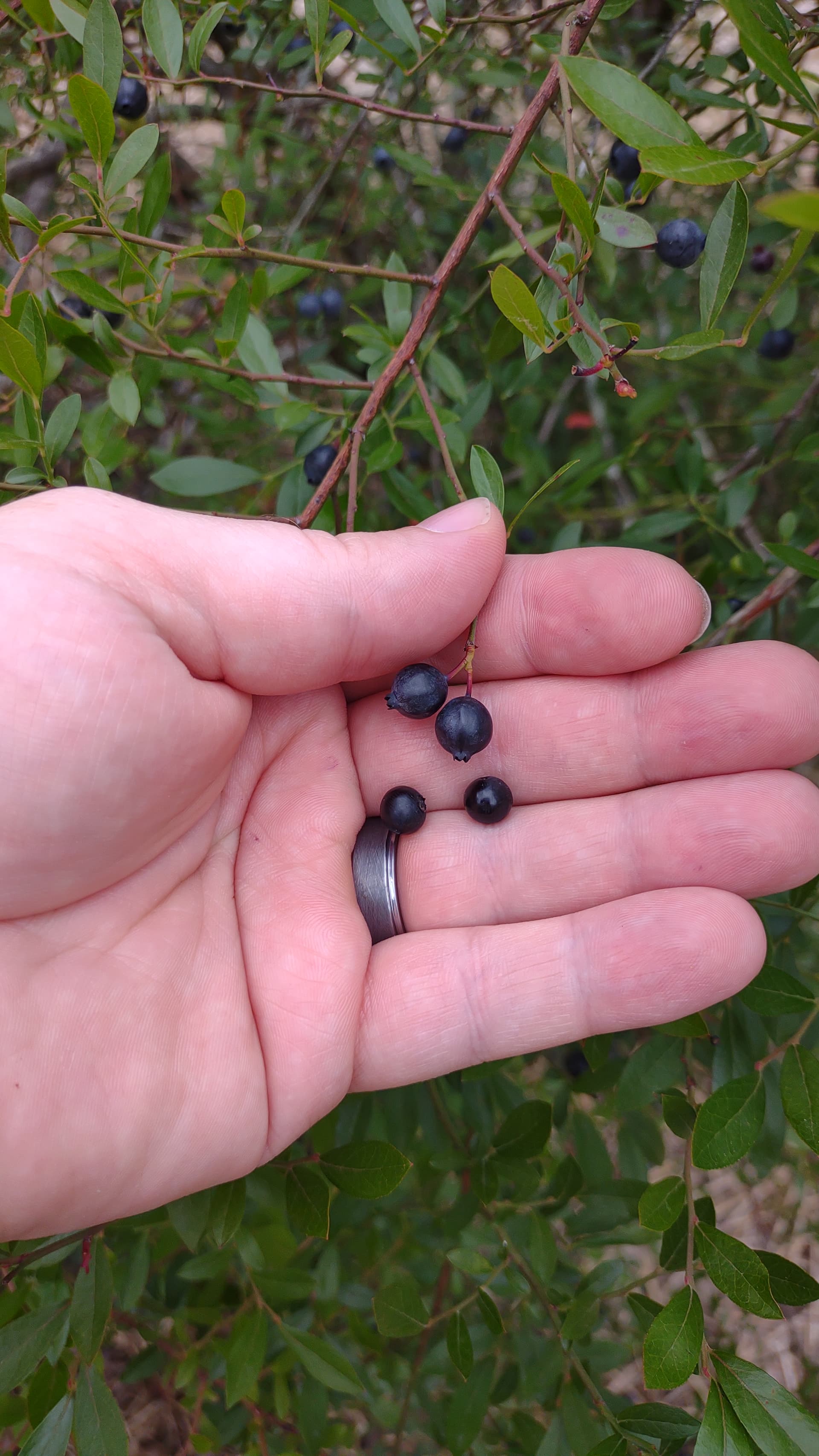 There were some other bushes nearby, both of Vaccinium elliottii and of some kind of later ripening “highbush” like variety. The other V. elliottii had the same small almost black berries that I’m more used to. I may attempt to graft some material from the big bush to the plants I have at home to see if the fruit quality is just from it bring a big, established plant or if it has good genetics.