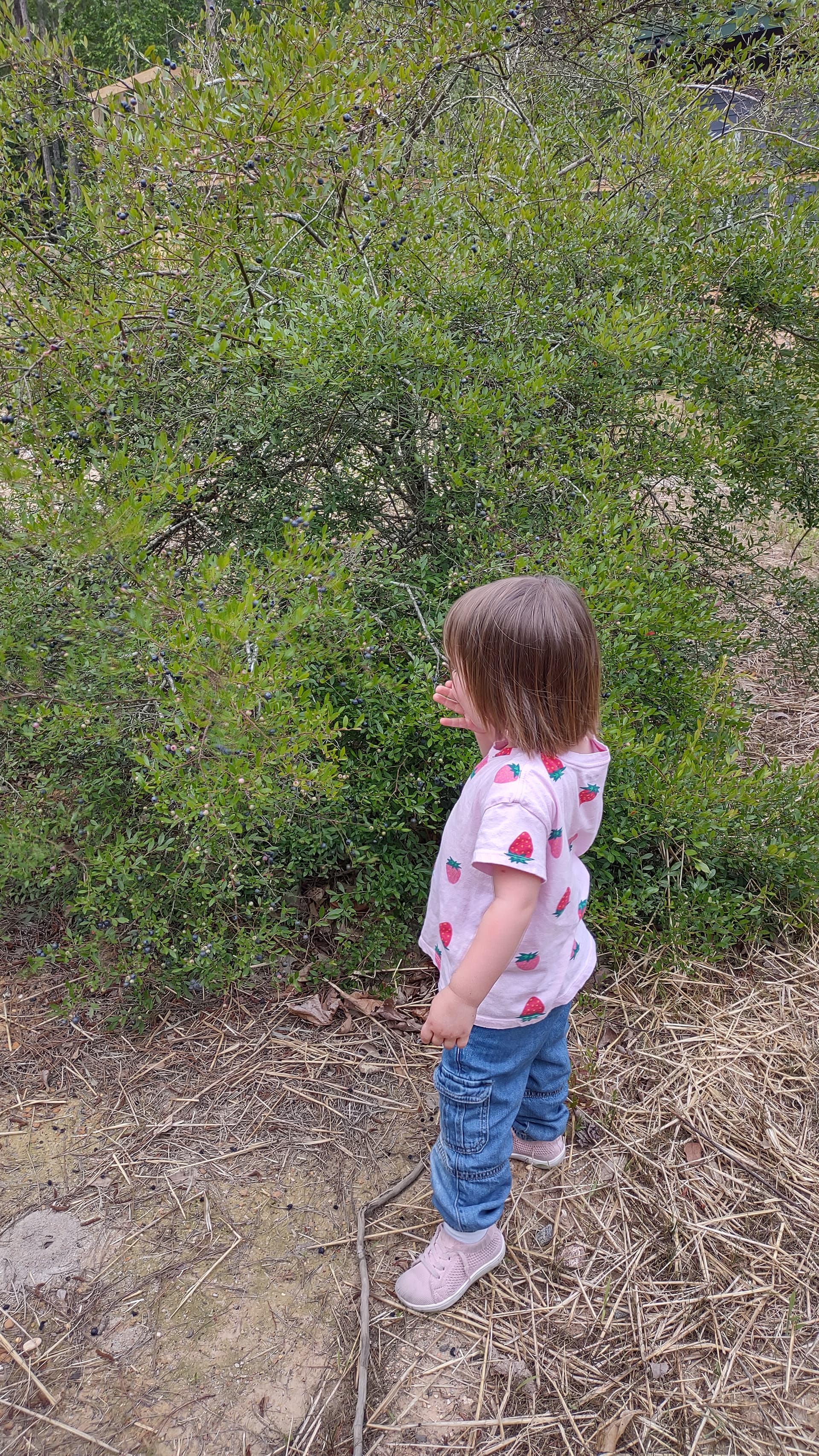 Both plants are about 6 feet tall with a distinctive clumping form with the top spreading out like an umbrella. I had ID’d them as corymbosum based on plant morphology, but it must be a southern ecotype. Highbush varieties from areas further north do not thrive here. These plants are drought tolerant, winter hardy, highly productive, and generally easy keepers. I have to net them to keep birds out. Otherwise they are trouble free.