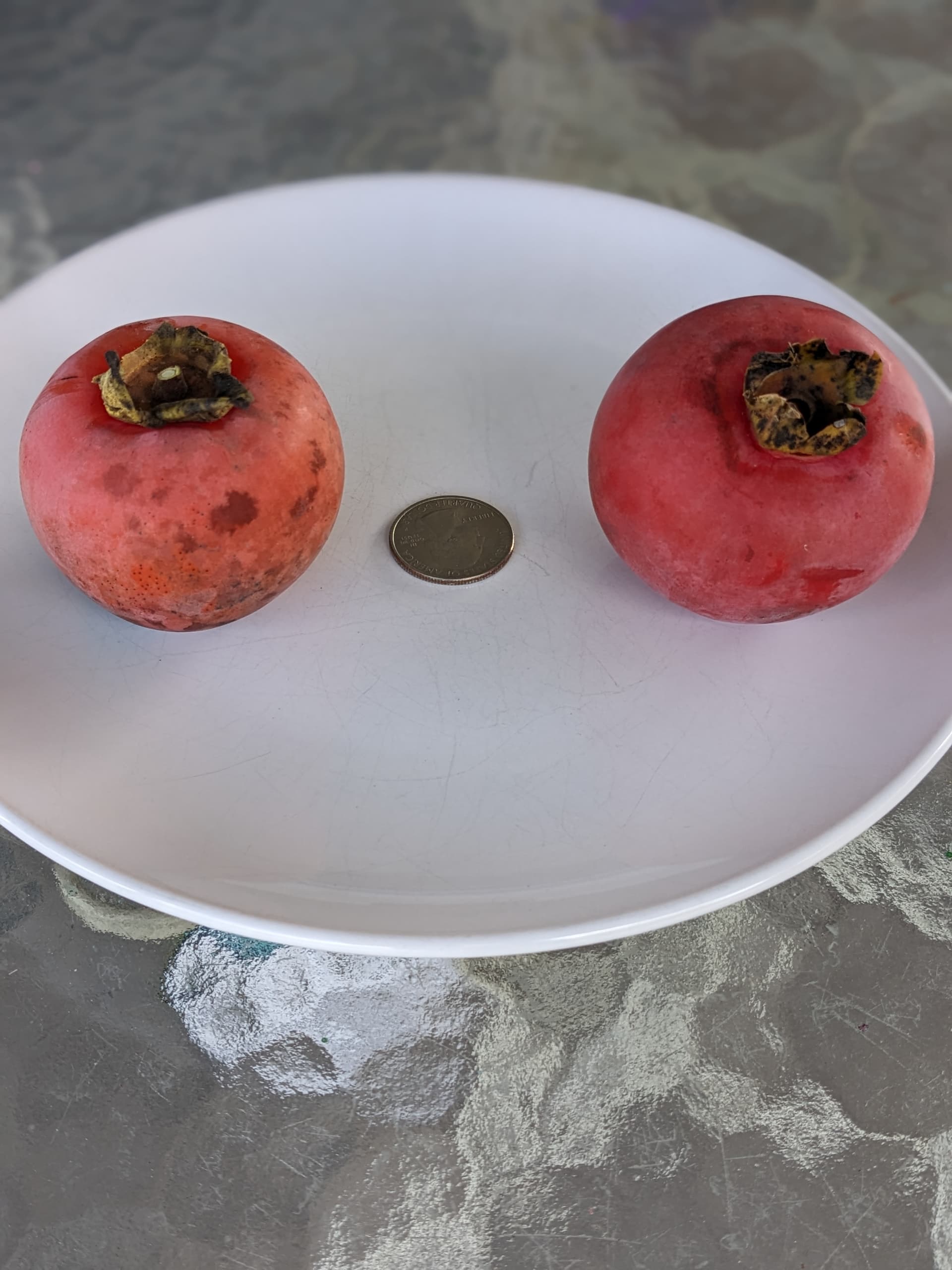 I had the chance to taste one of my last Nikita’s Gift fruits of the season at the same time as one of my first Sestronka fruits. The texture of both is very similar - soft but not mushy, even when fully ripe and not watery. Nikita’s Gift fruit are a bit larger on average, but both cultivars are smaller than most kaki I’ve grown. I think Sestronka has the better flavor - a little more of the D. virginiana flavor while Nikita’s Gift tastes more like a kaki (though both are somewhere in between D. virginiana and D. kaki in terms of flavor). I also tasted a late Kasandra today but didn’t keep one for the photo. The Kasandra fruit is smaller on average than Sestronka and Nikita’s Gift and more like D. kaki in flavor than either of these two. I’m glad to grow them all! The tree in the pictures is Sestronka. The fruit on the left of the plate is Sestronka, with Nikita’s Gift on the right.