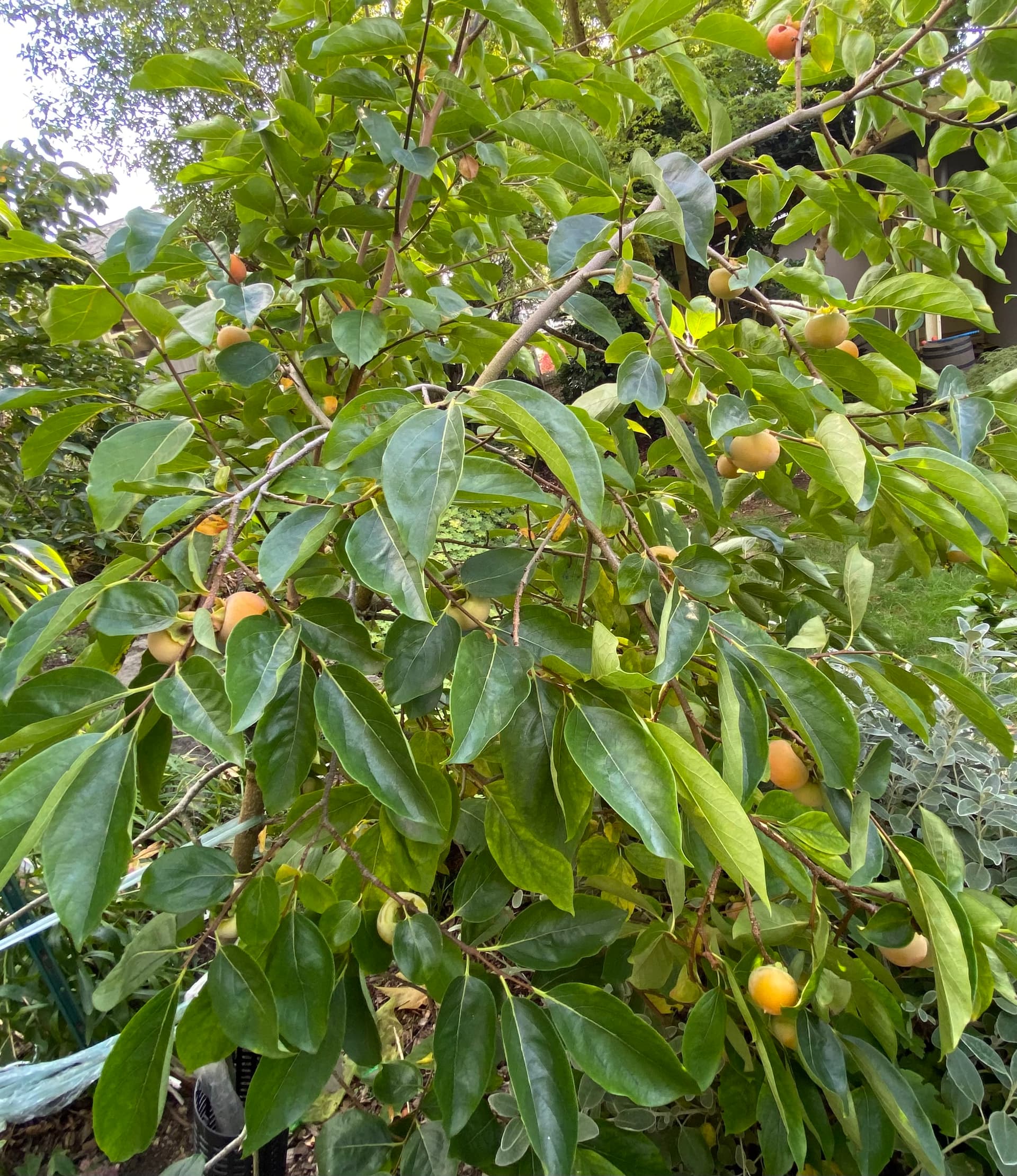 Yes, the large tree in the background with the swing is a male D. virginiana. I’m assuming all the hybrids I grow can be pollinated by D. virginiana because they always have seeds. All my kakis have been seedless so far, and even when Nikita’s Gift was the only hybrid I grew that flowered/fruited, it had seeds.