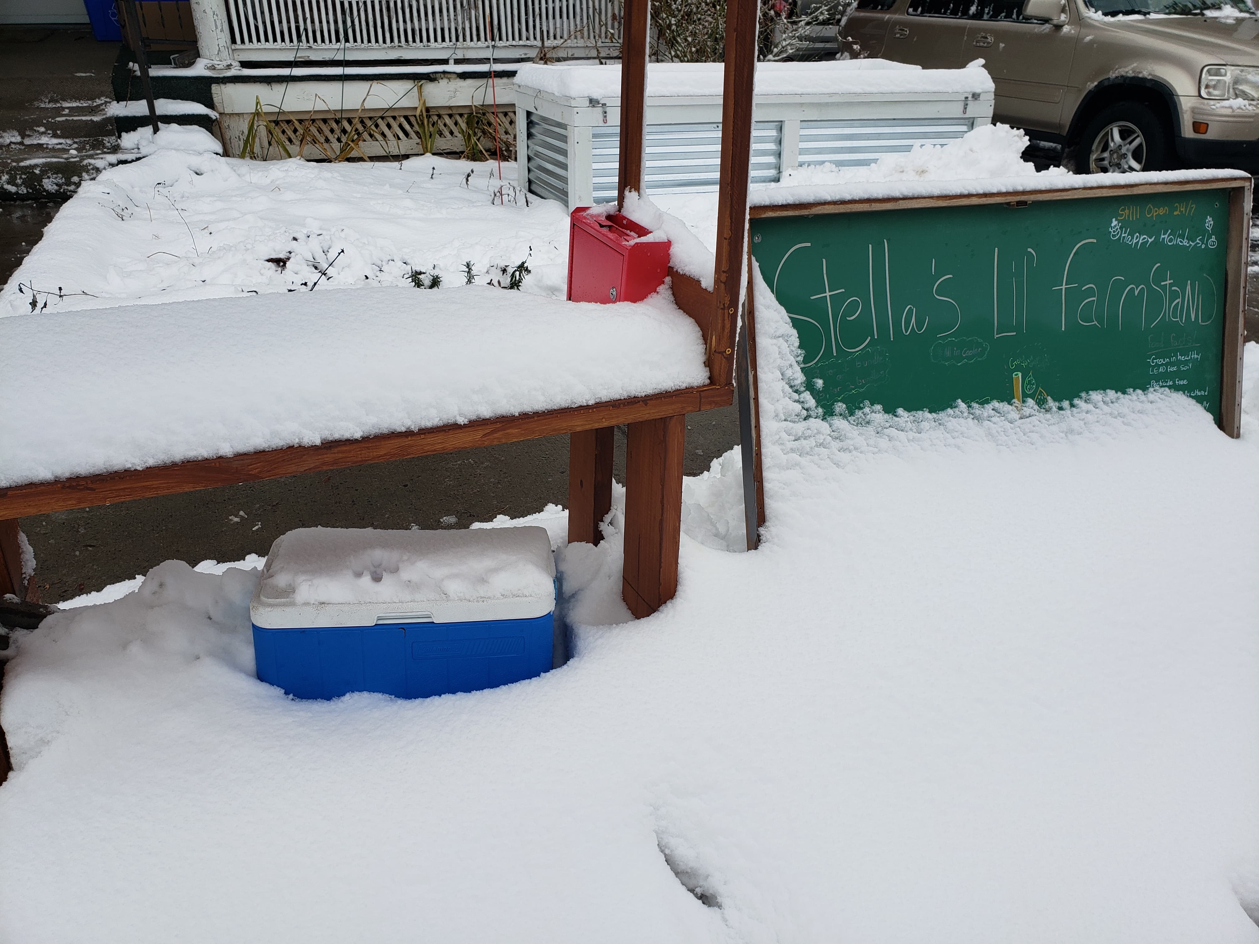 I let the 13 year old take care of the signage. She was emptying the cash box and helping to restock earlier this year but teenagers are easily distracted (as someone else posted about on one of their projects). The “lead free soil” is mentioned because our neighborhood was close to a shuttered foundry that was found to have contaminated the surrounding soil. We’re due to have the top foot of our soil removed and replaced next summer.
