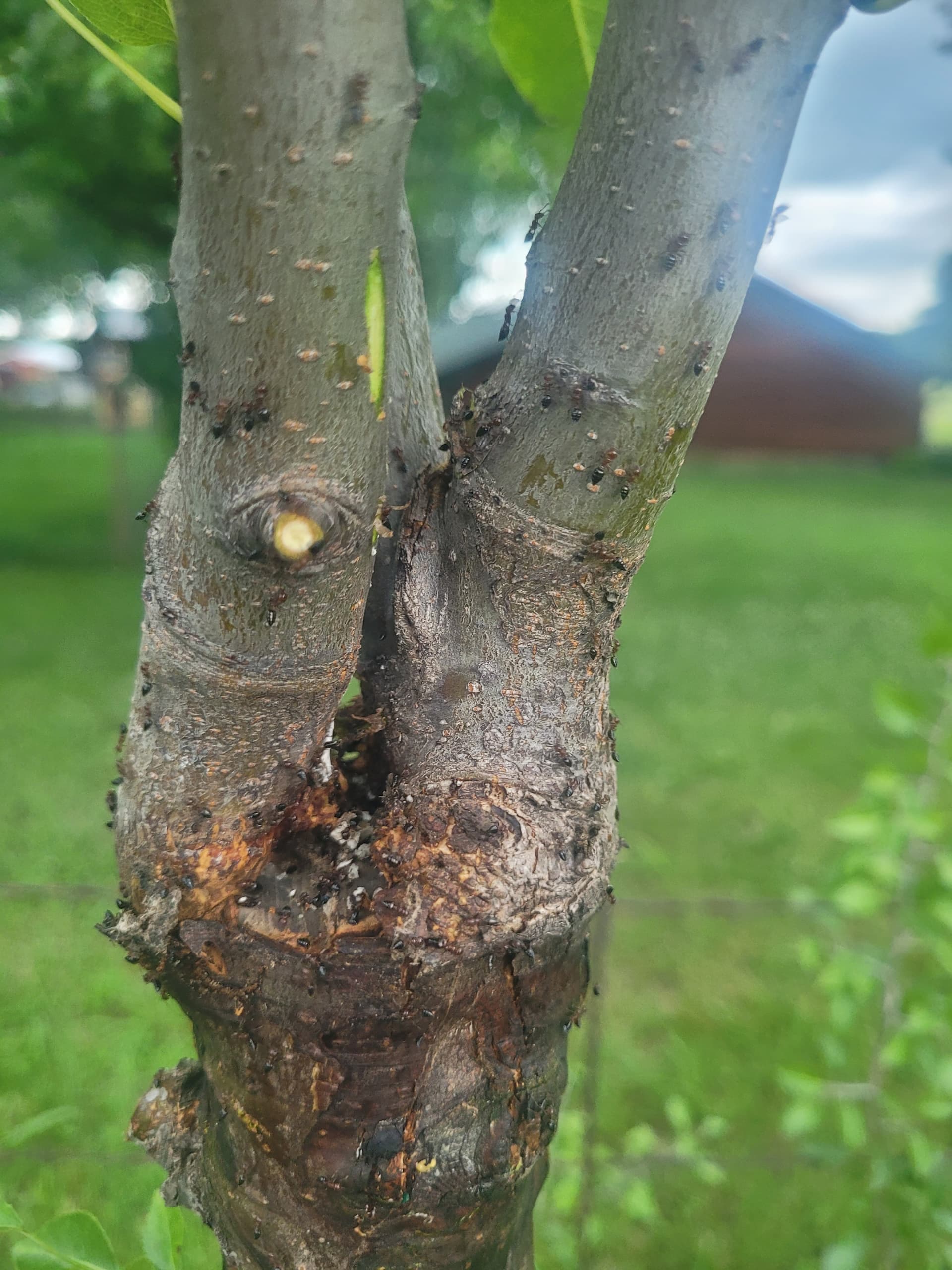 Well, i should have been back sooner, but i wasn’t to pull that grafting tape. Oh well no harm done really. With large diameter trees it doesn’t matter and sometimes it helps to leave the tape on awhile. Wood ants were hiding under the plasticina. If i had done that with a small tree it could have killed it.