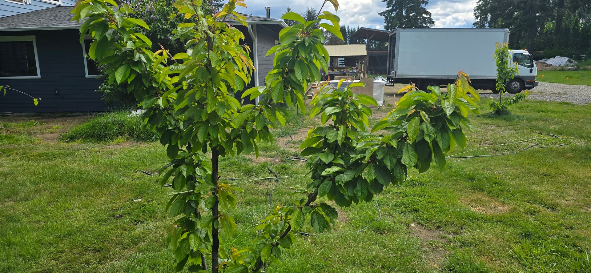 The cherry trees were all 2 year starts, when I planted them 3 years ago. So about 5ish years old.