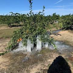 Florida farmers do spray citrus trees with water to prevent freeze damage