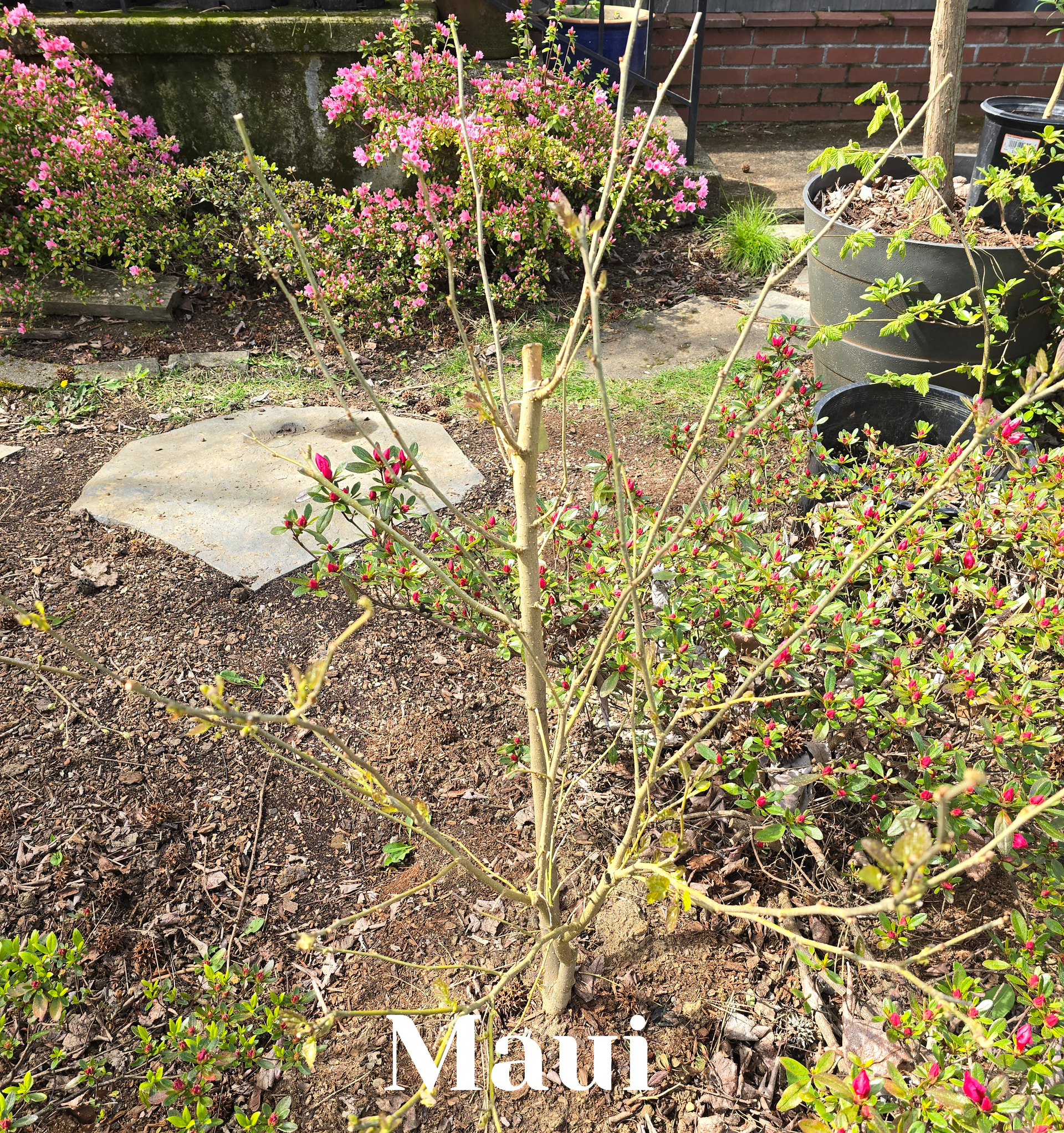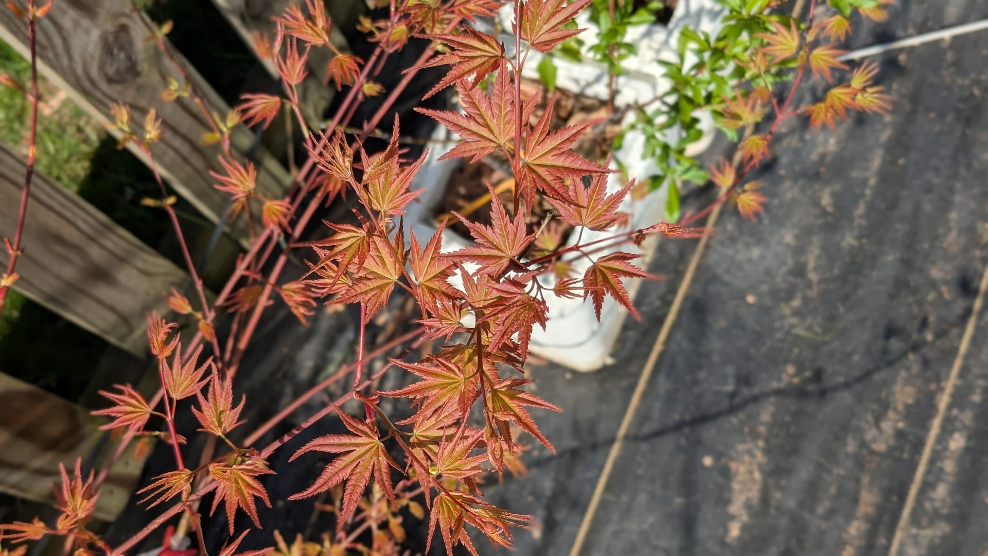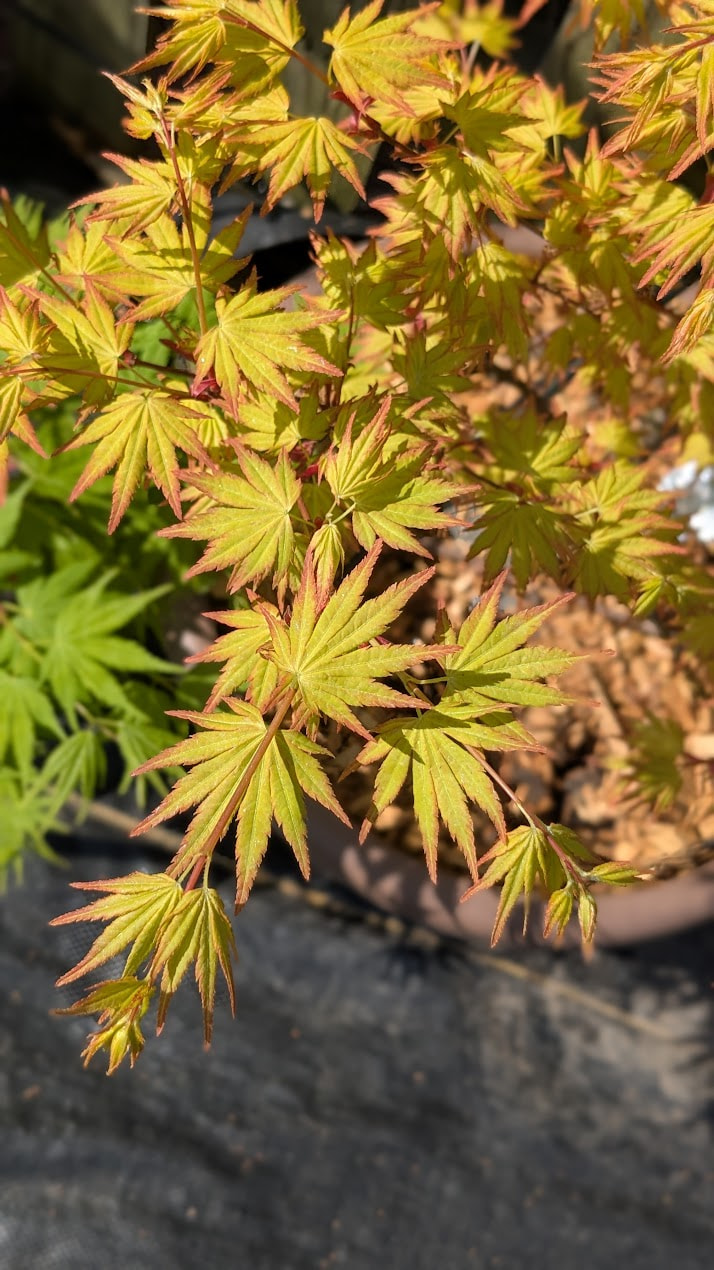 They’re pictures that I took this morning of my Japanese maples, clockwise from top left: Shin Deshojo, Hino Tori Nishiki, Arakawa, and Orange Dream. I love the variations of Spring colors on newly emerged leaves on the different cultivars.