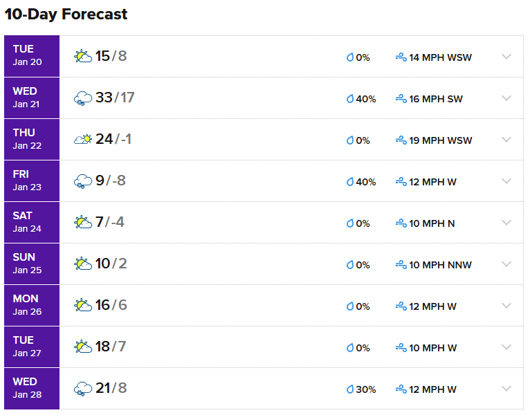 Here we go again. All temperatures in Fahrenheit. Looks like Wednesday is the day to apply the frost cover.