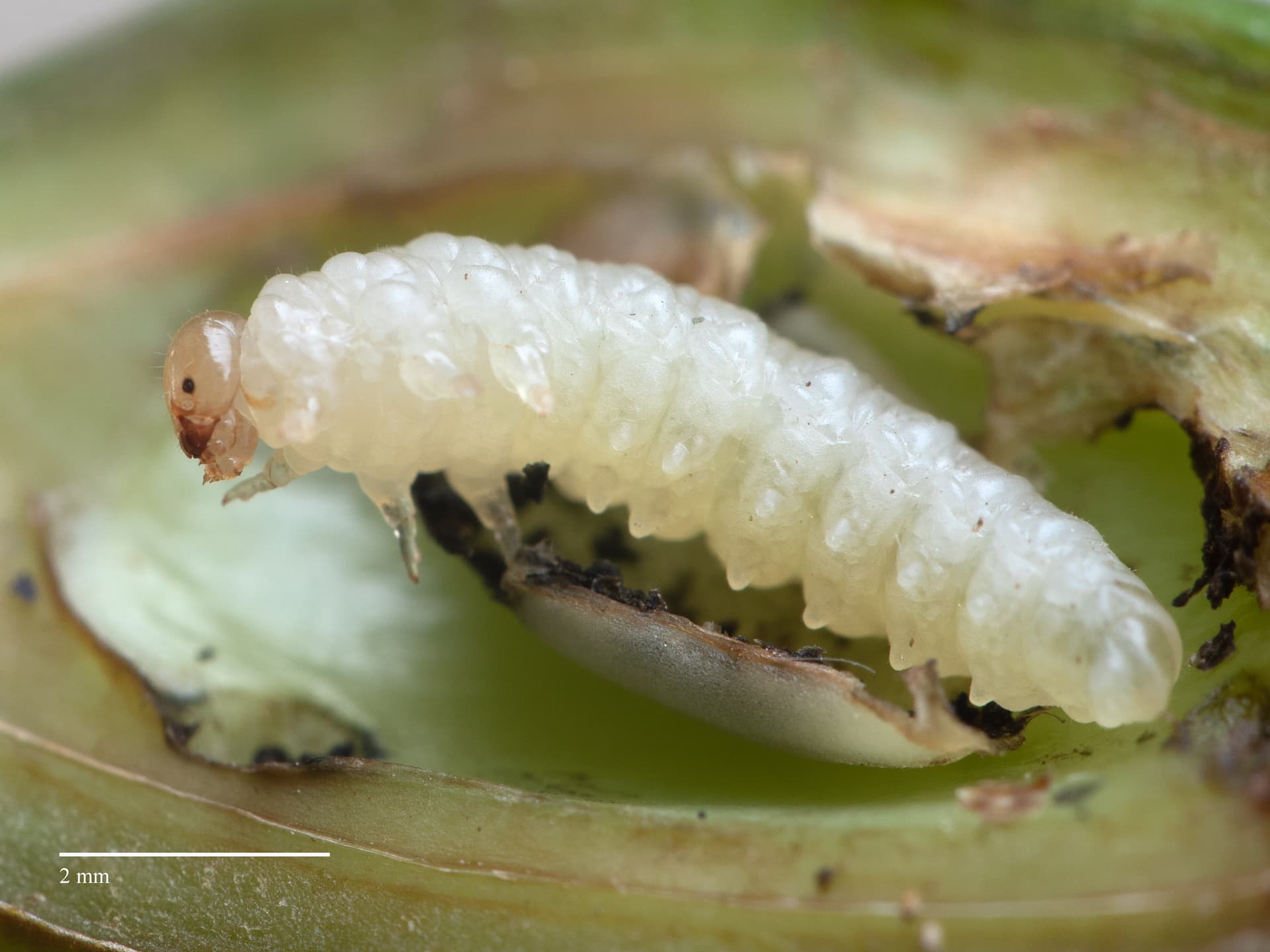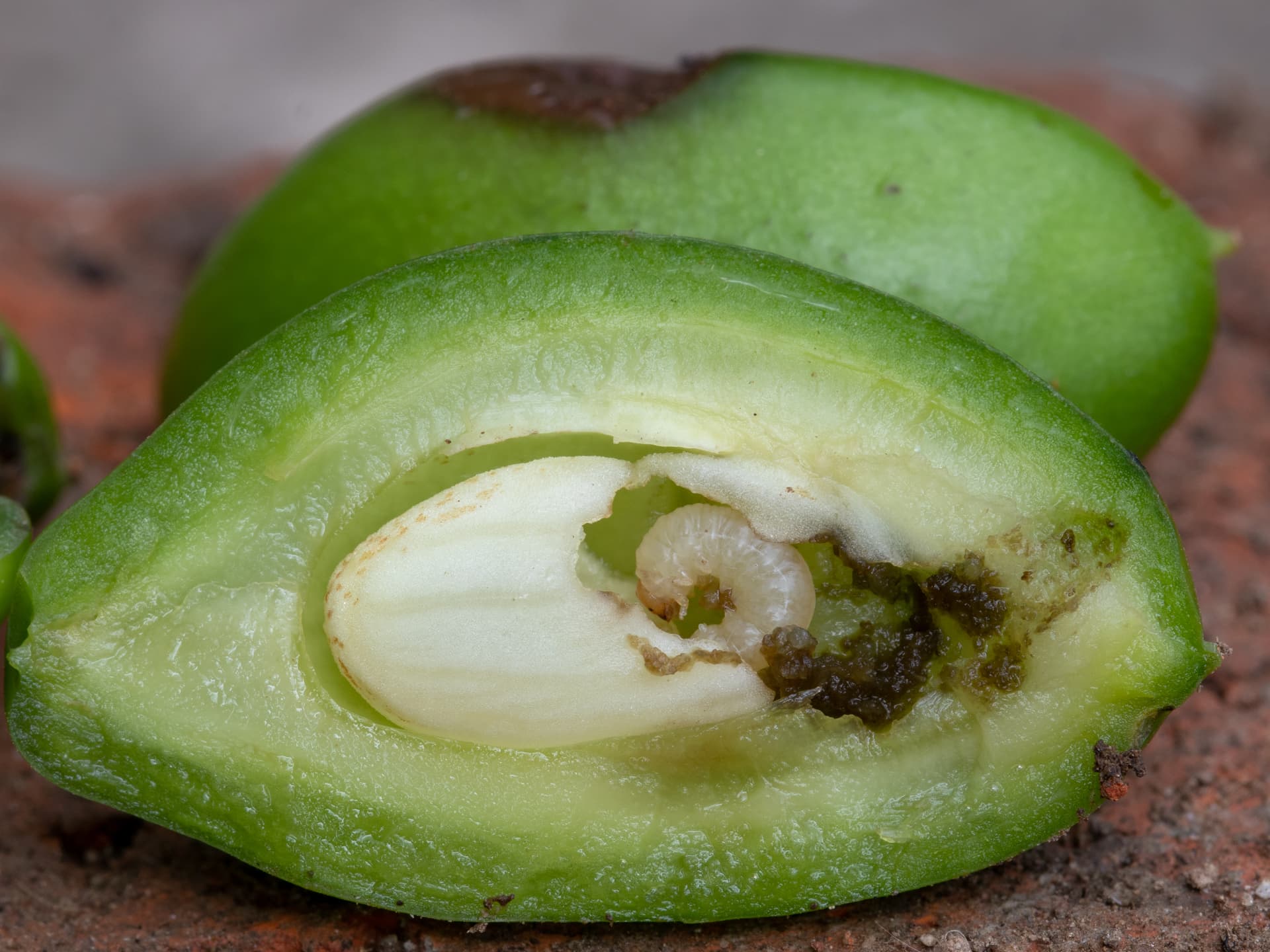 An awful pest of the European plum; one larva bores into up to 5 fruits, causing them to drop. When I grew the Stanley variety, the damage was almost 100%. This is on the Elena variety which is moderately affected (so far).