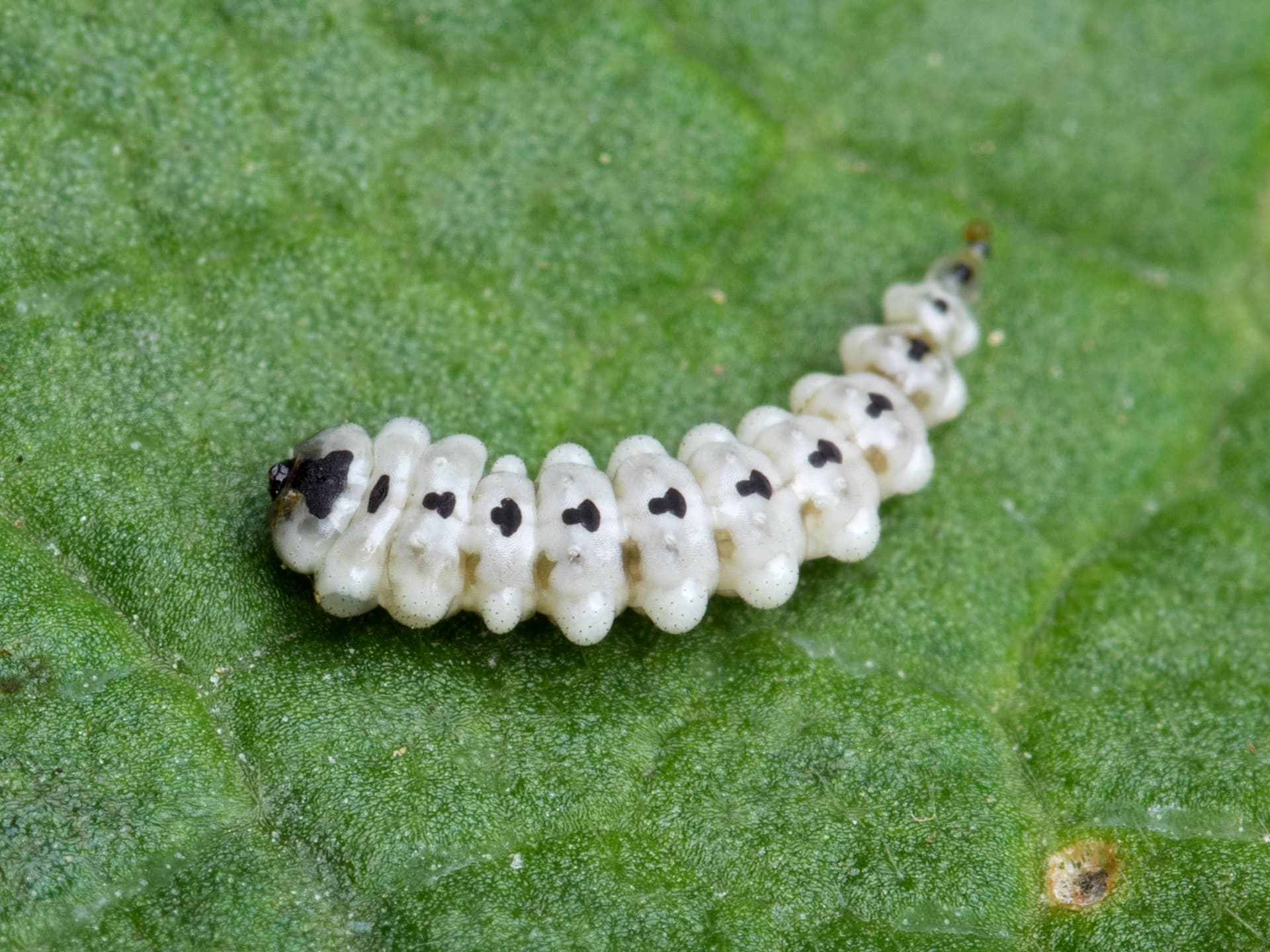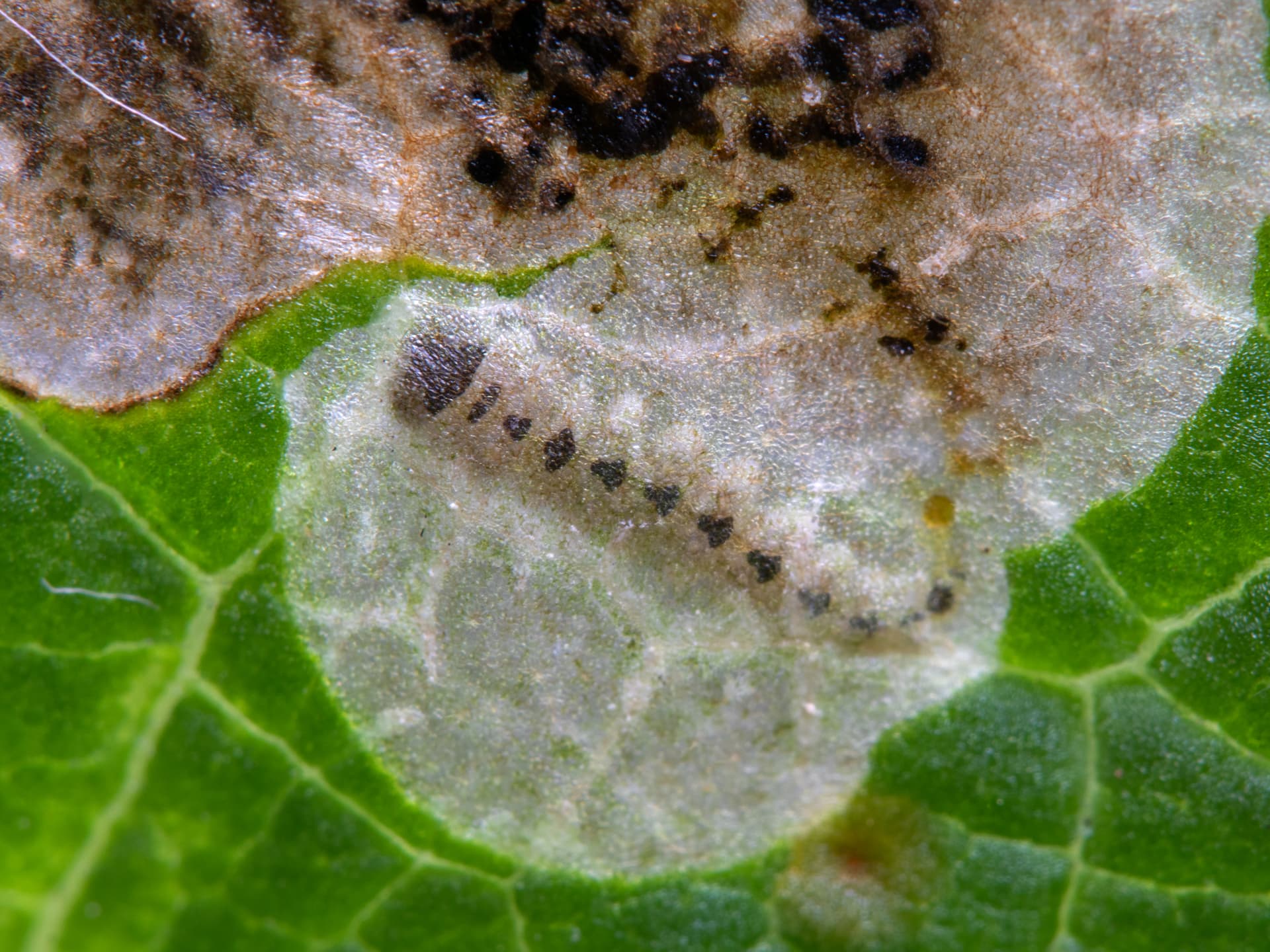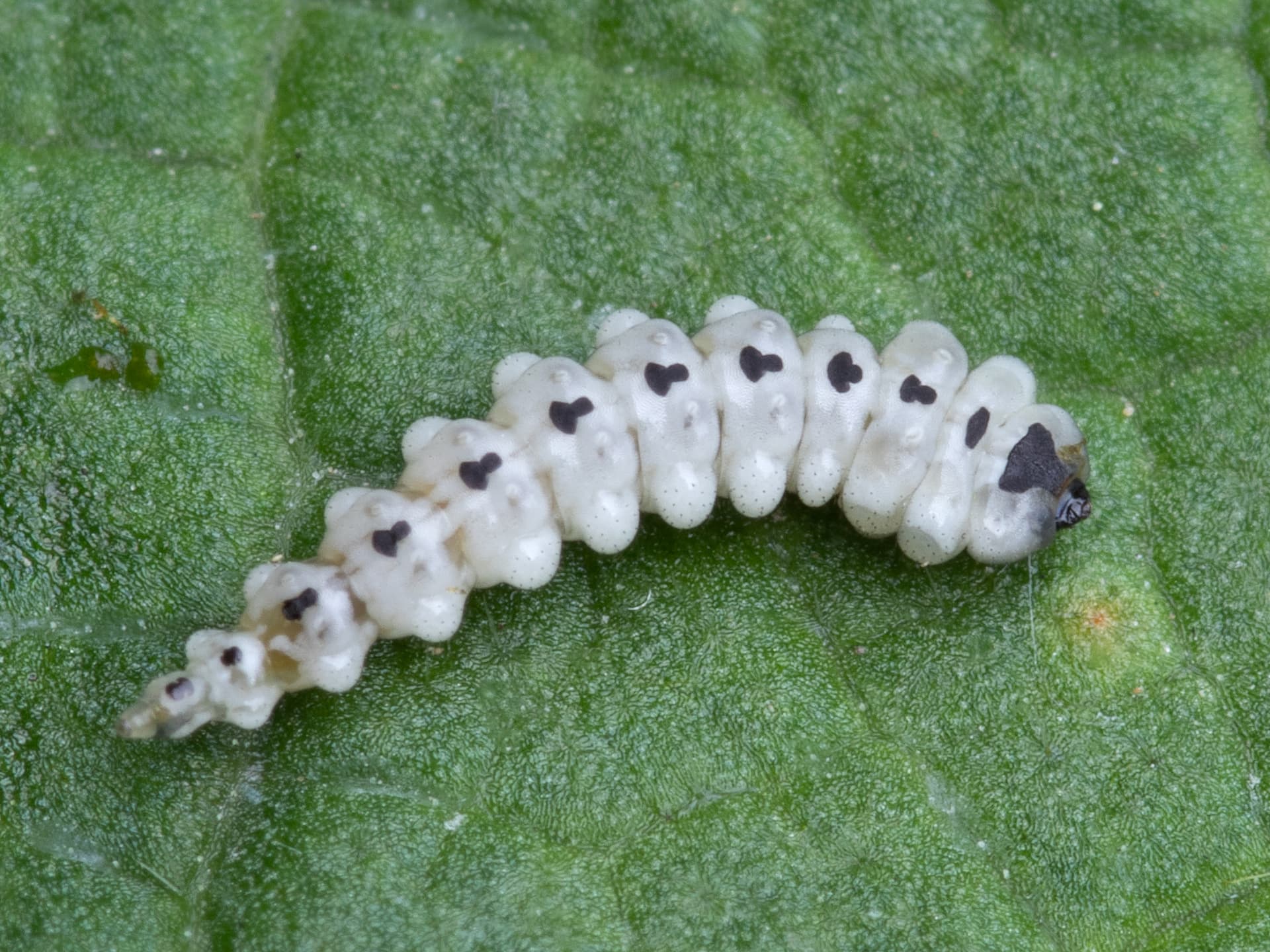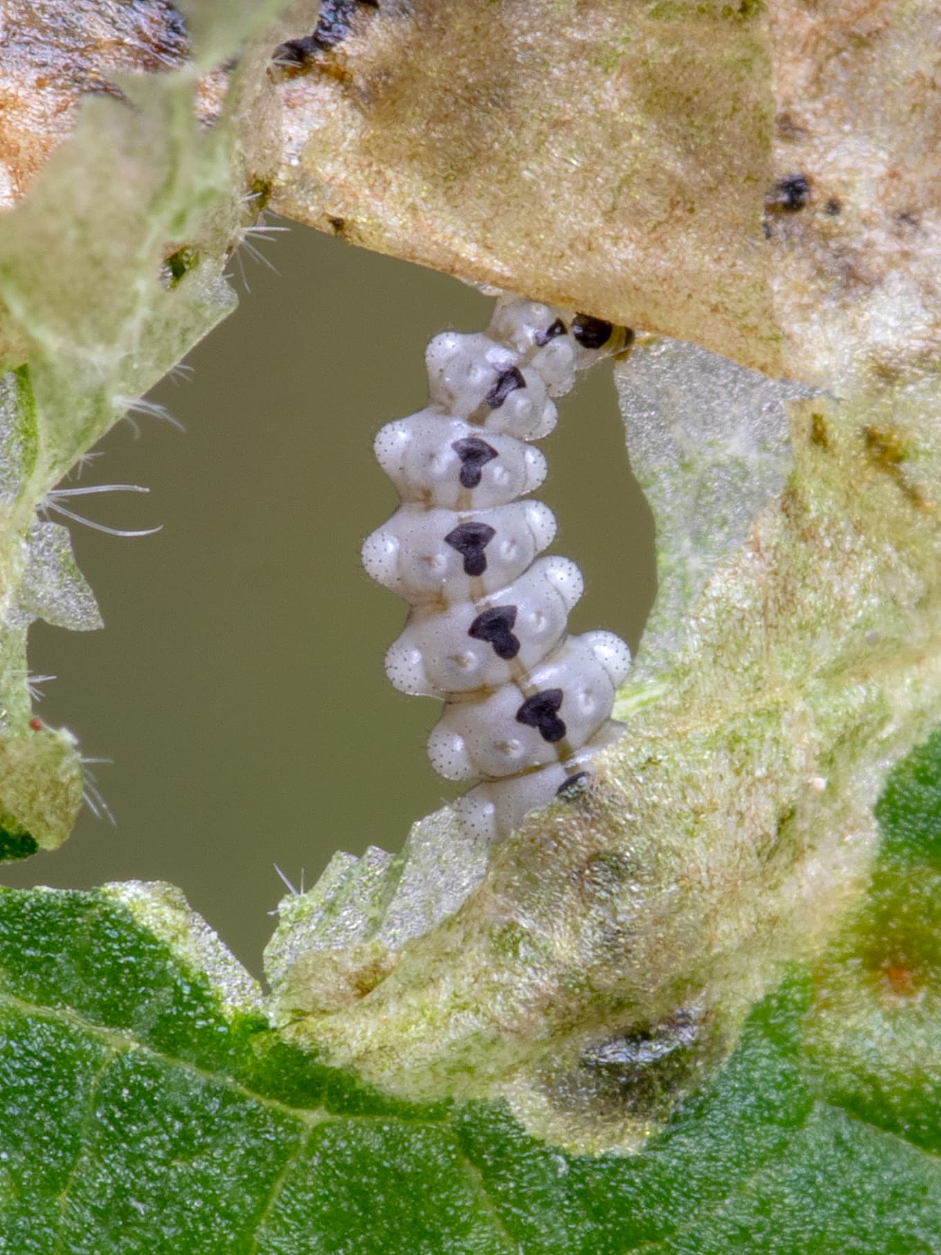 Hoplocampa minuta/flava - black and yellow plum sawfly (larvae are very similar, same damage).