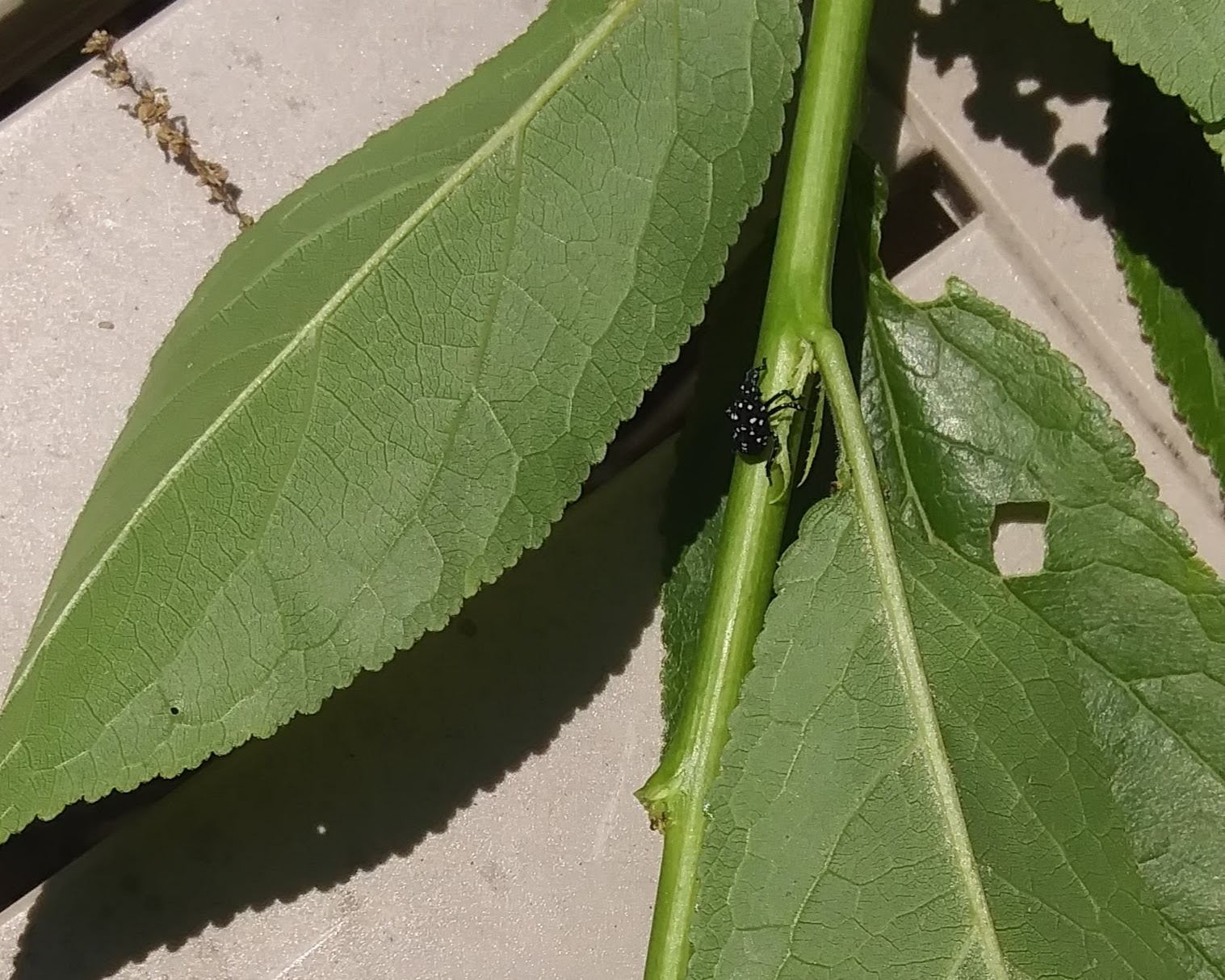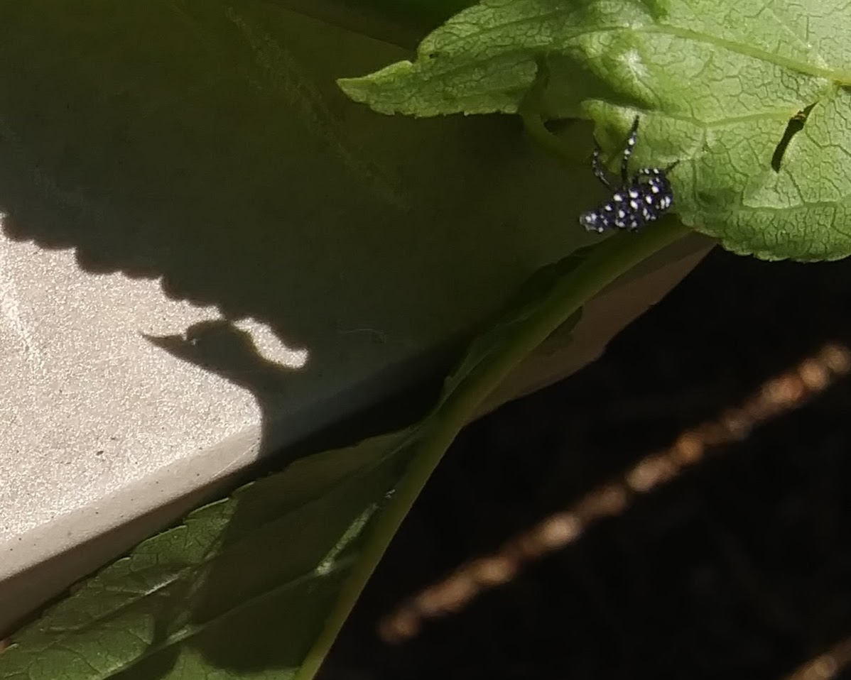Black with white dots identified as Spotted Lanternfly nymphs.