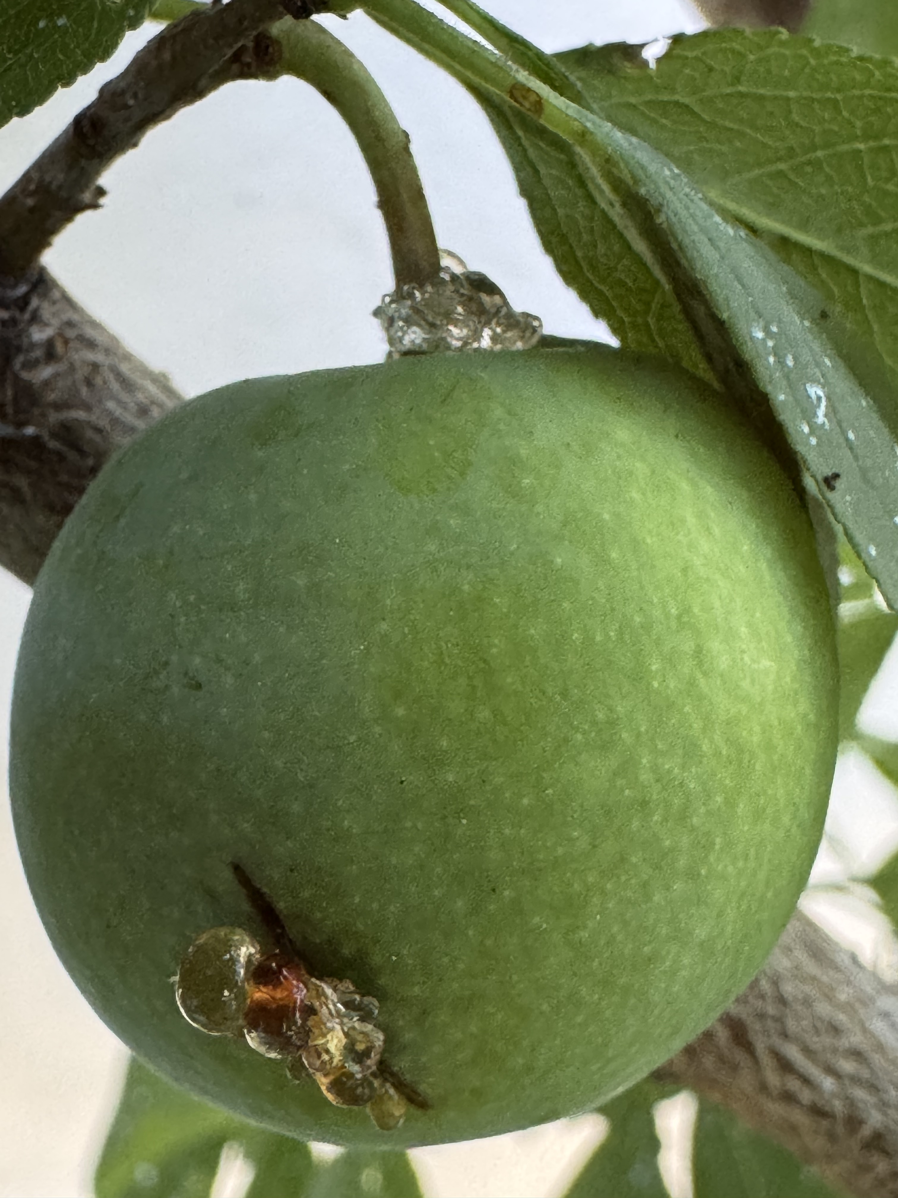 My pluots very first fruit after planting in 2020!!! Ugh!!! What do we have here?