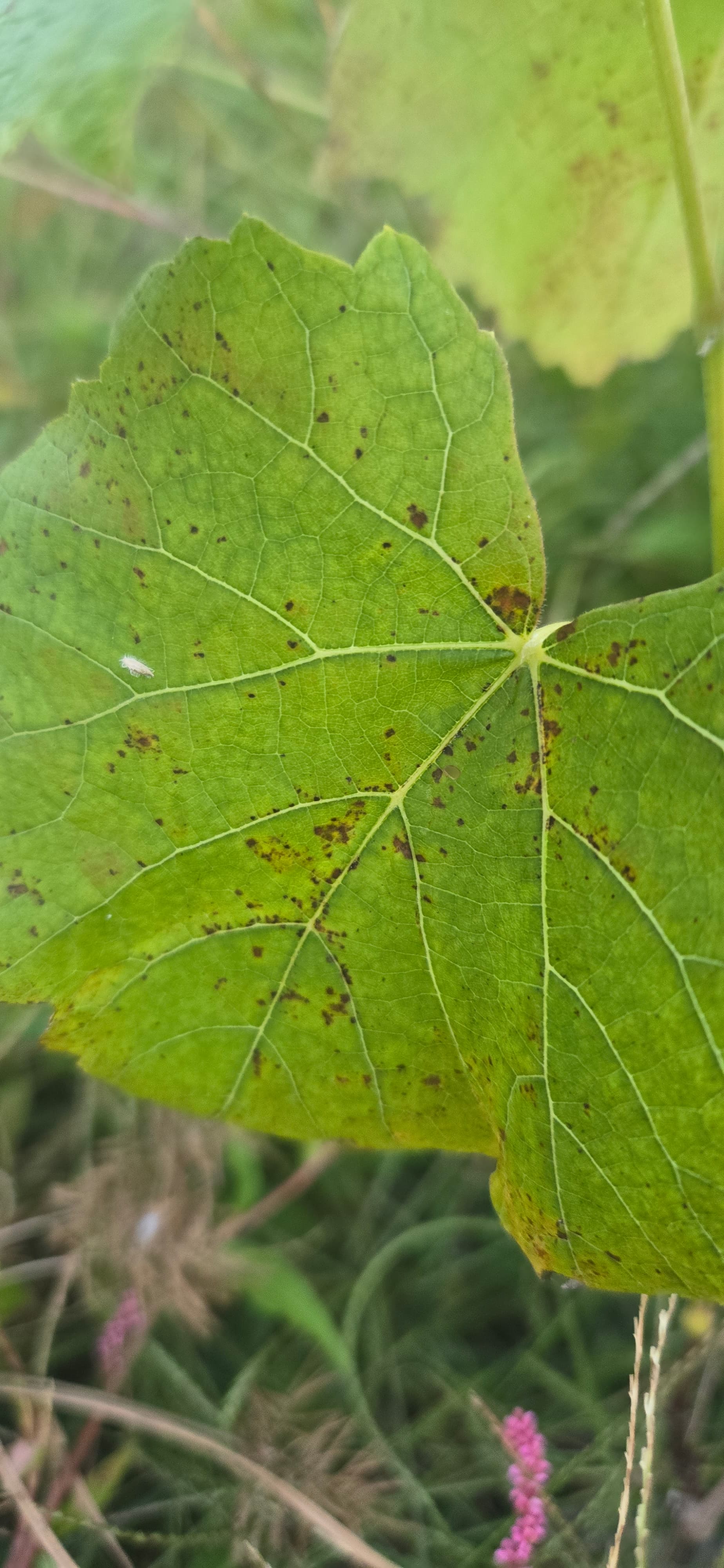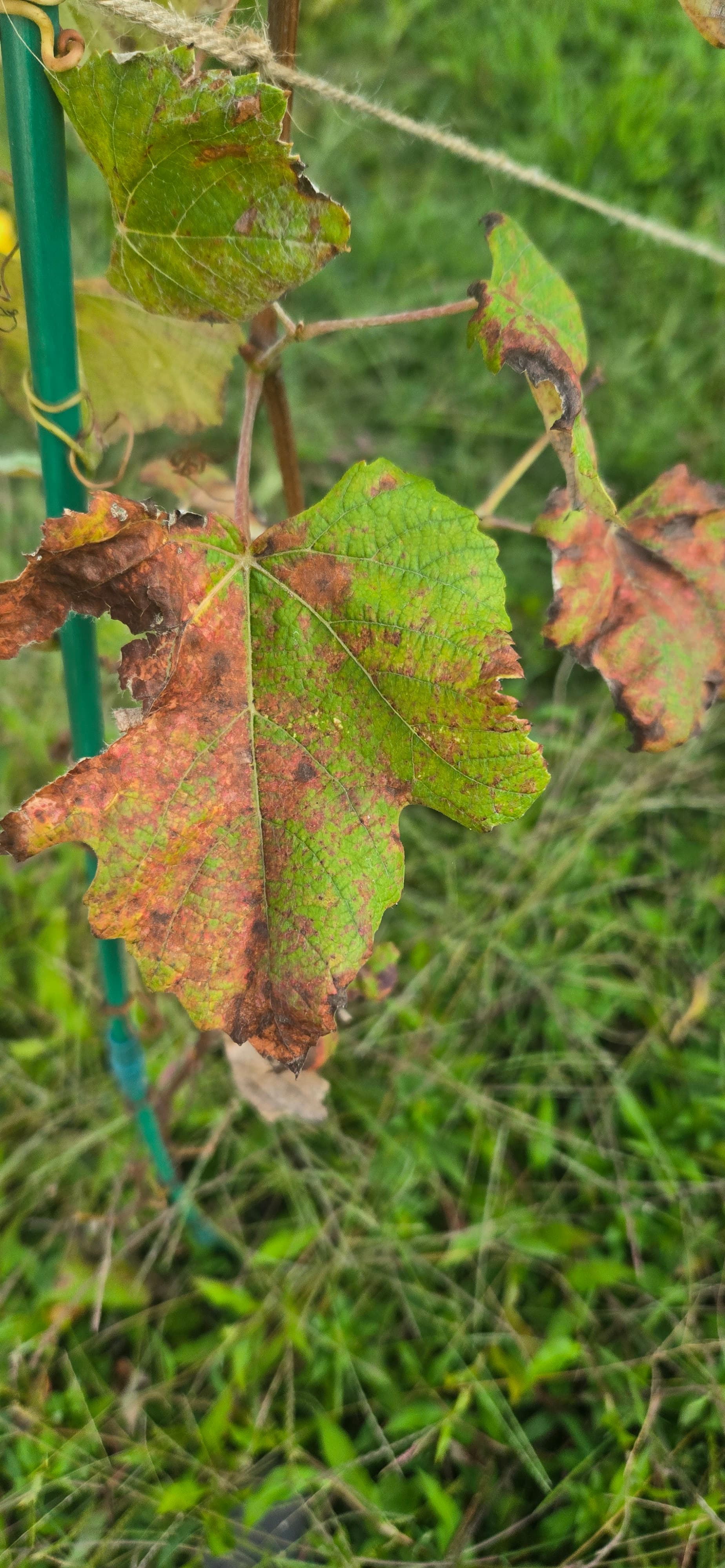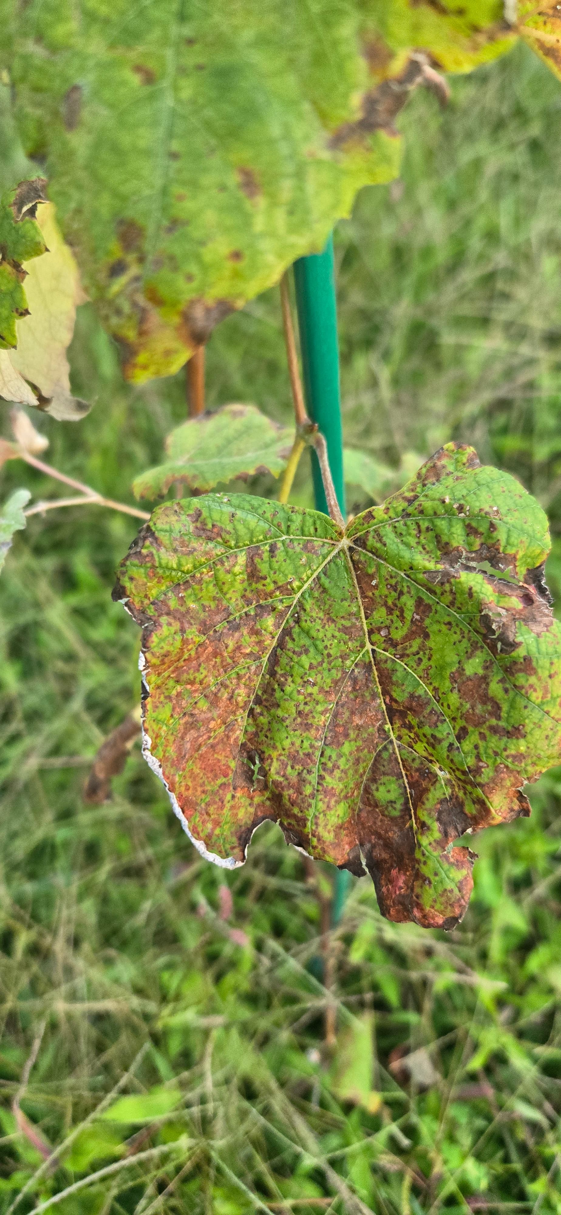No idea, but I noticed this on mine recently to a lesser extent. I stopped spraying my grape along with everything in mid July or so.