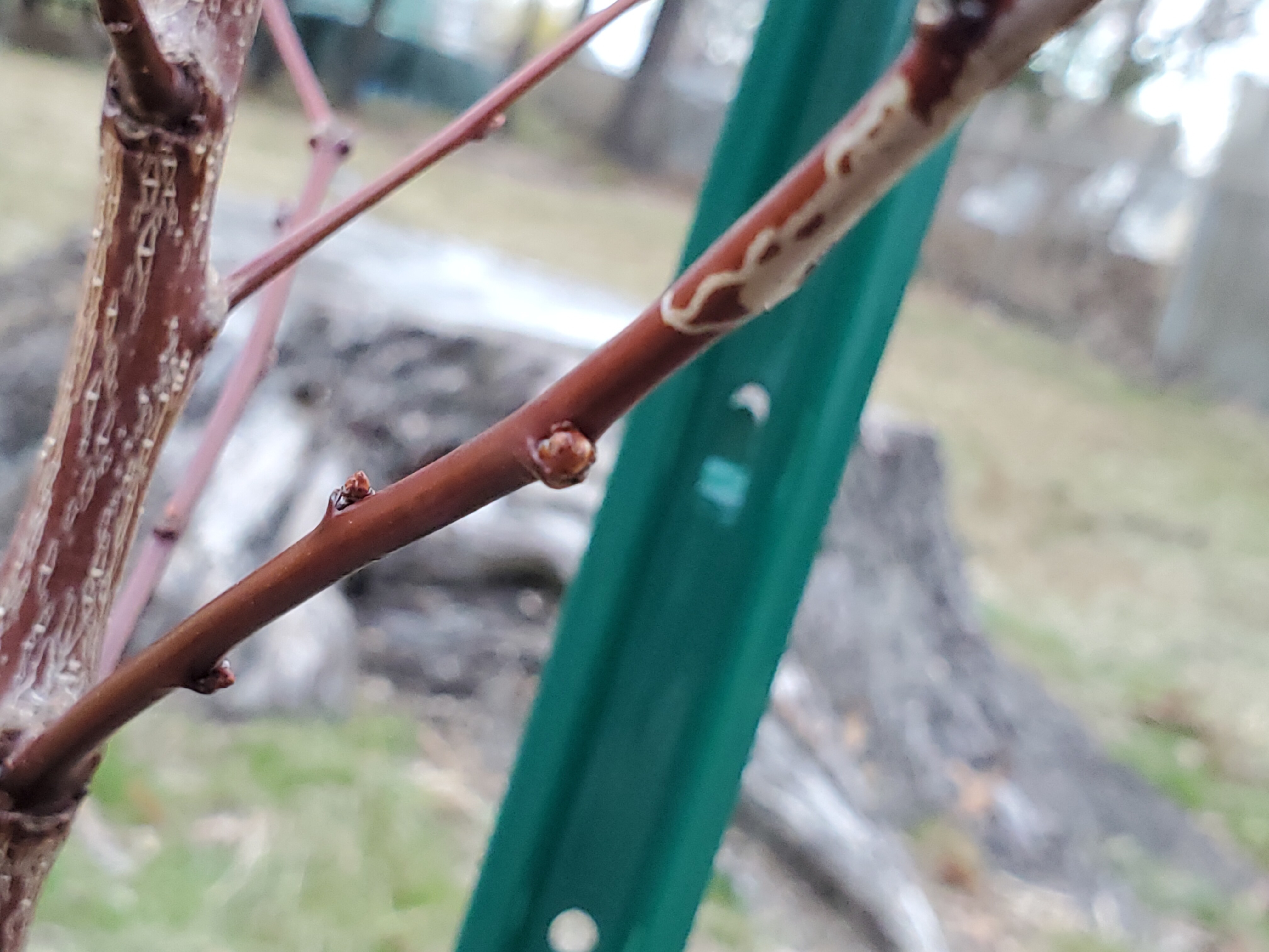 I donât believe either to be a problem. To me the plum leaves just look like ones that didnât fall off in the fall and have shriveled up.