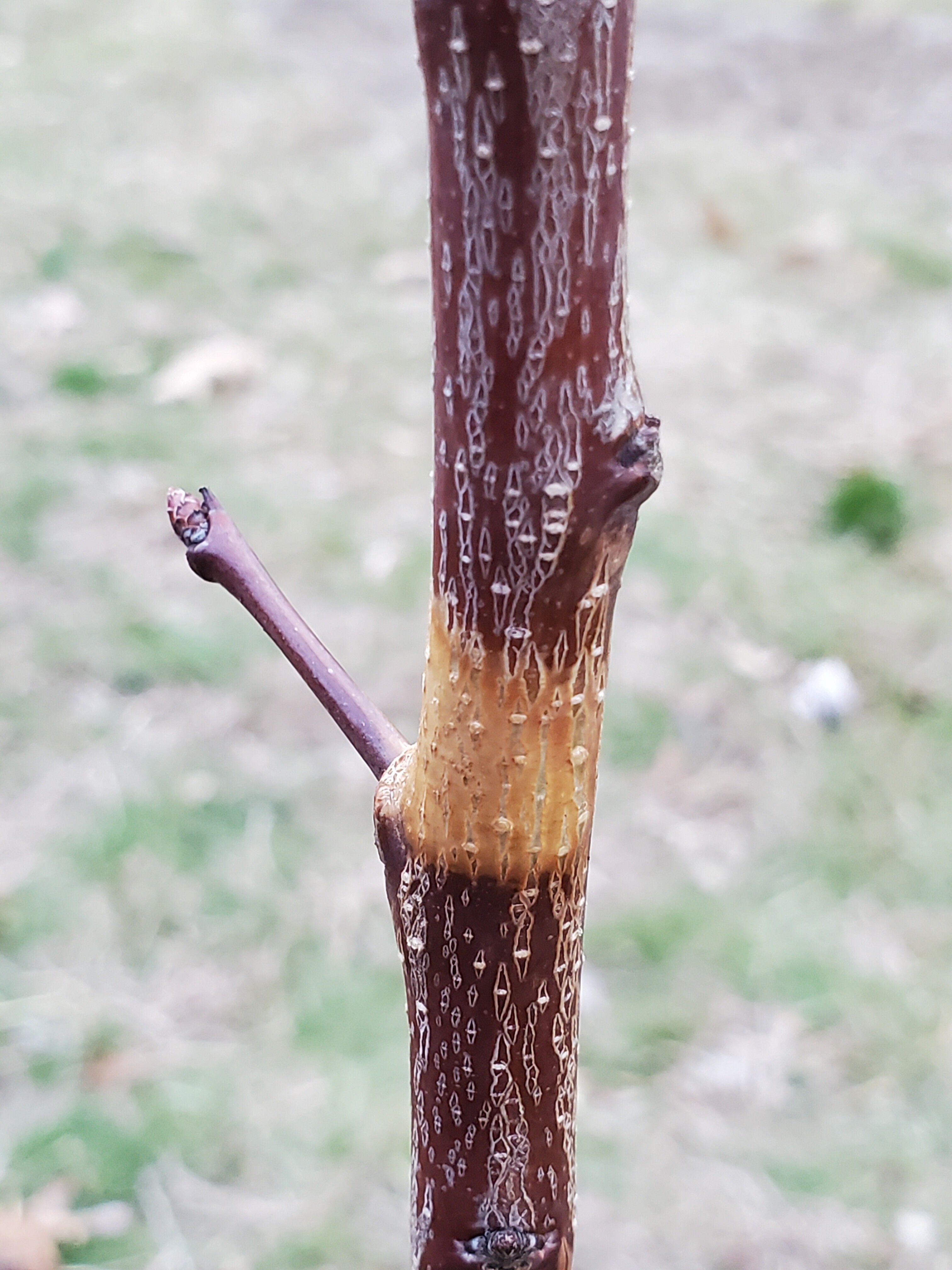 I havenât scratched the bark yet to see what it looks like underneath. Itâs also about where Iâm planning to make a heading cut, so it might go away either way?