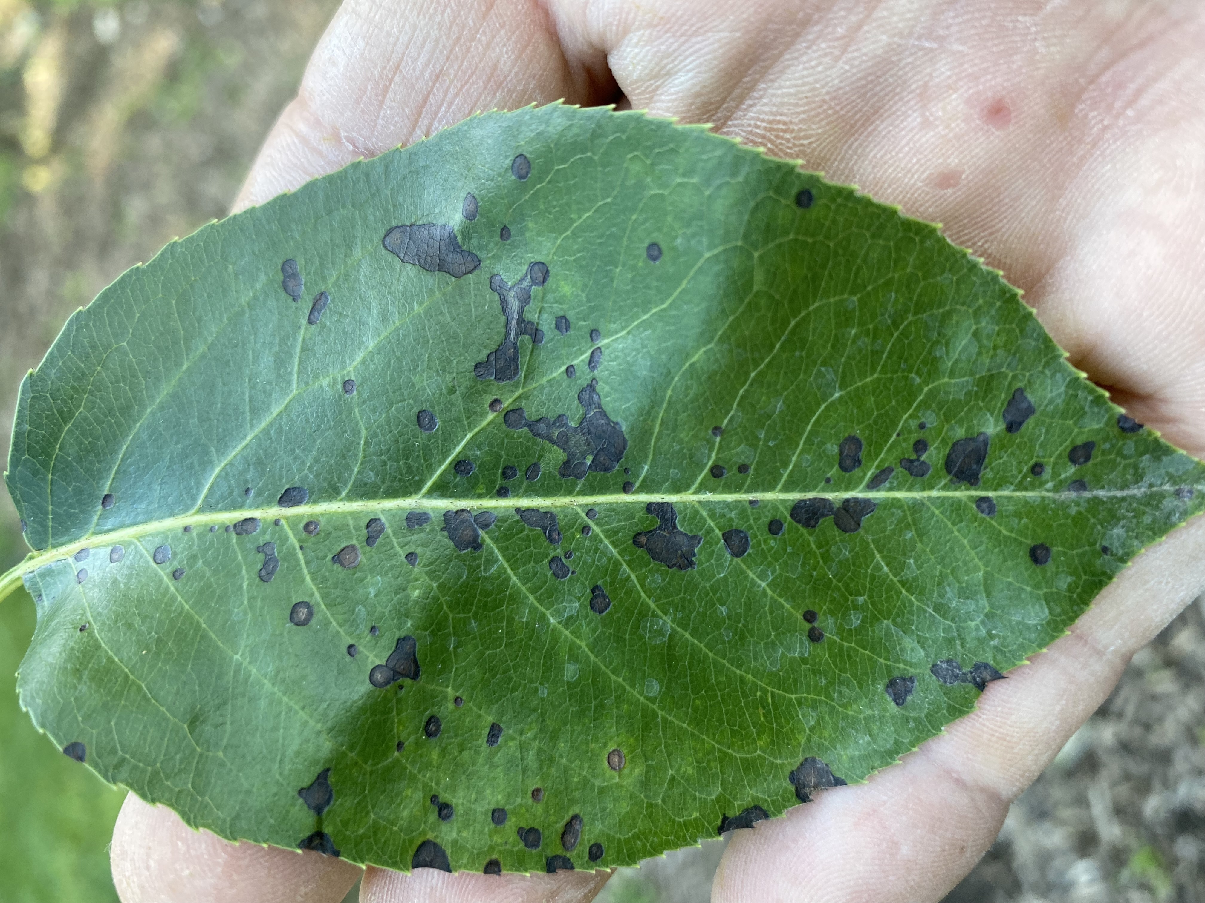 Hey I have a question, what pear disease do I have here? I always thought it was pear scab, but I am now wondering if it is Fabraea Leaf Spot. I got it badly the last couple years so I started doing more disease spray on my pears and this year it is only in a few places I missed. So I’m not so worried about it ay more but want to make sure I have the right diagnosis. It doesn’t look like any pear scab picture I found, and it looks more like the Fabrea Leaf Spot pictures I found.