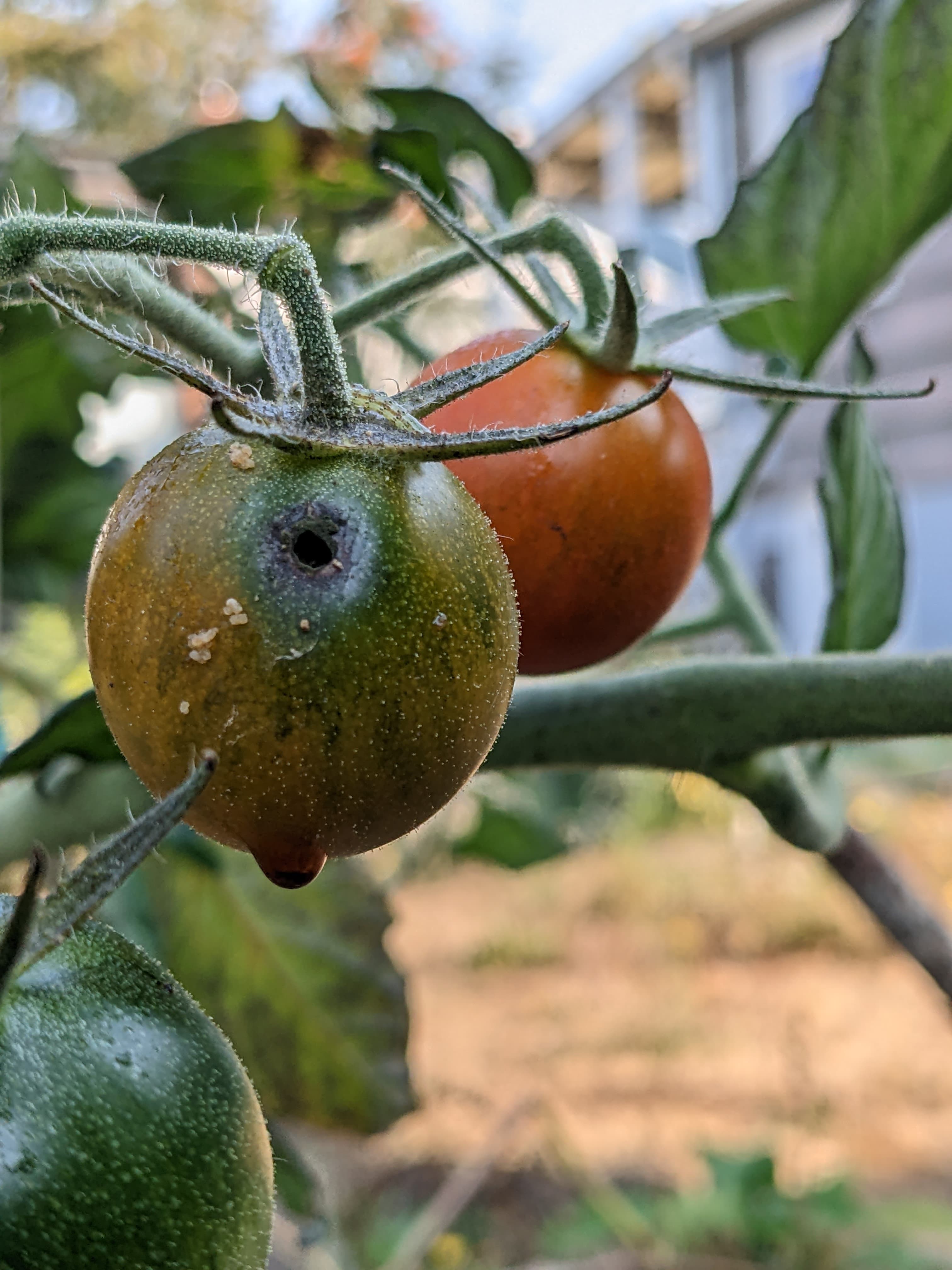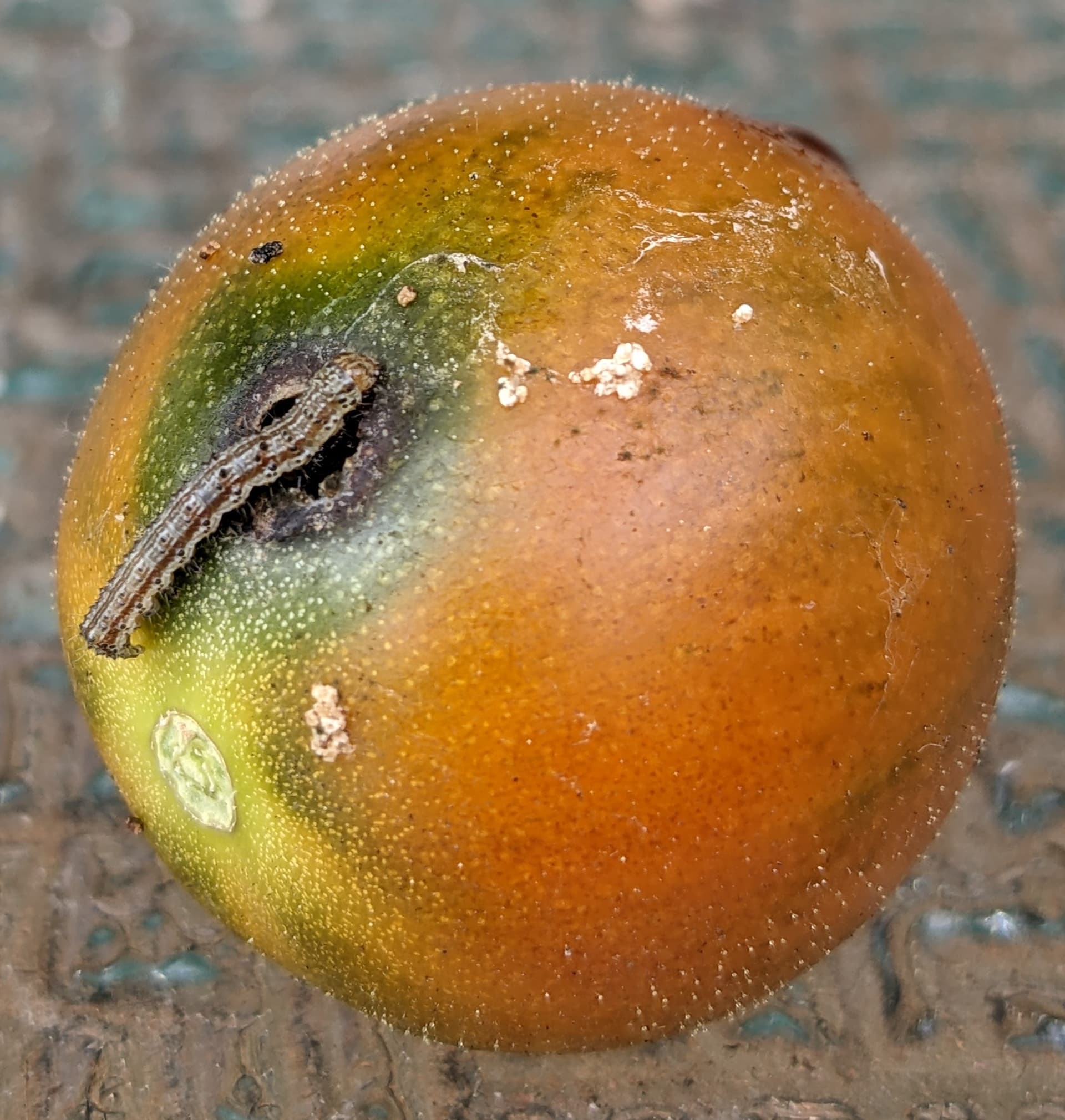 I put the tomatoes with holes in a screened terrarium so I can see what moths they become (assuming they can make it to that point with the pile of tomatoes as food).