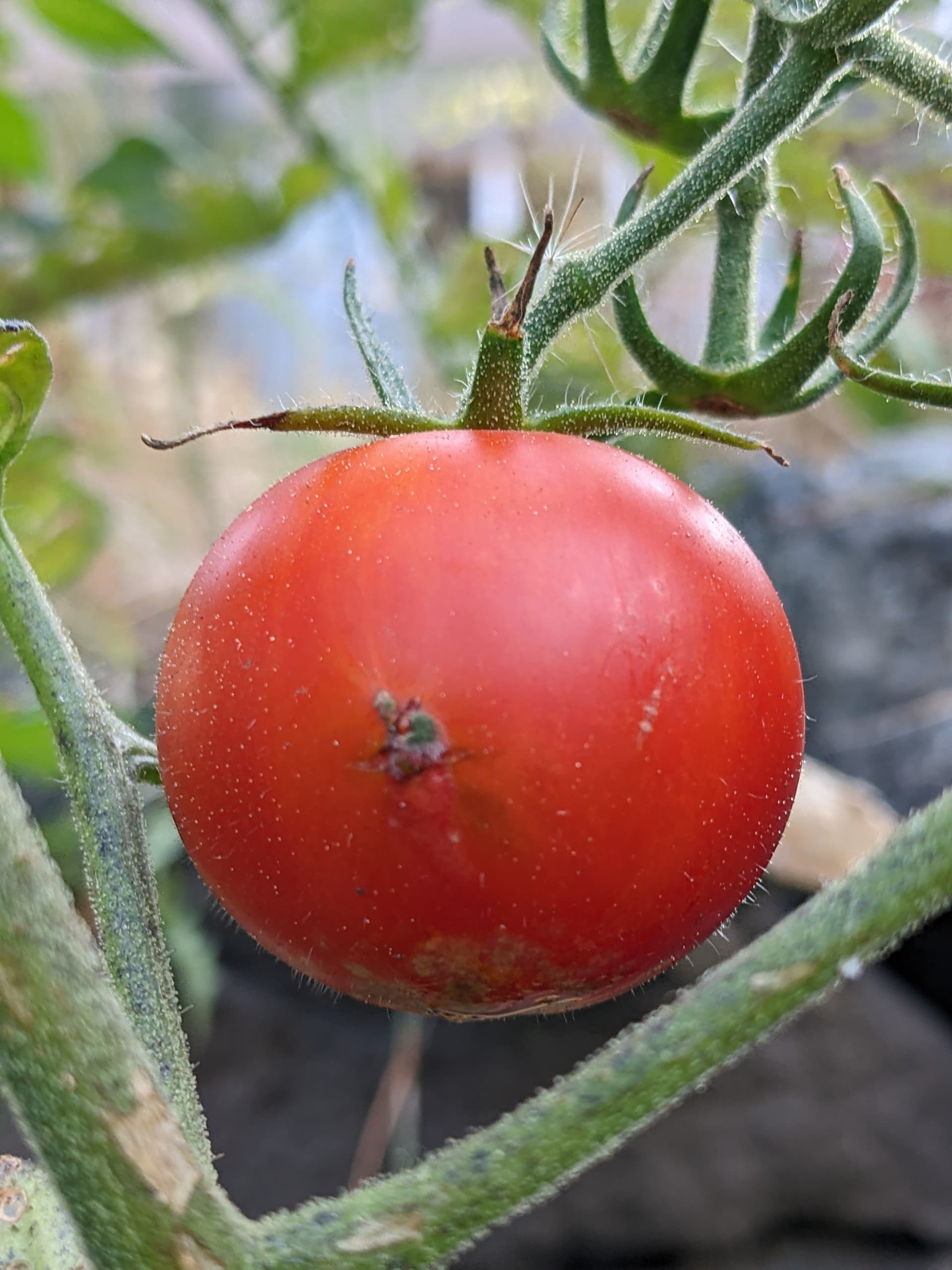 Does anyone know what causes “strikes” like this on tomatoes? I had my 1-year-old in my arms or I would’ve cut one open to see what it looks like inside, I can go do that soon if that’ll help: