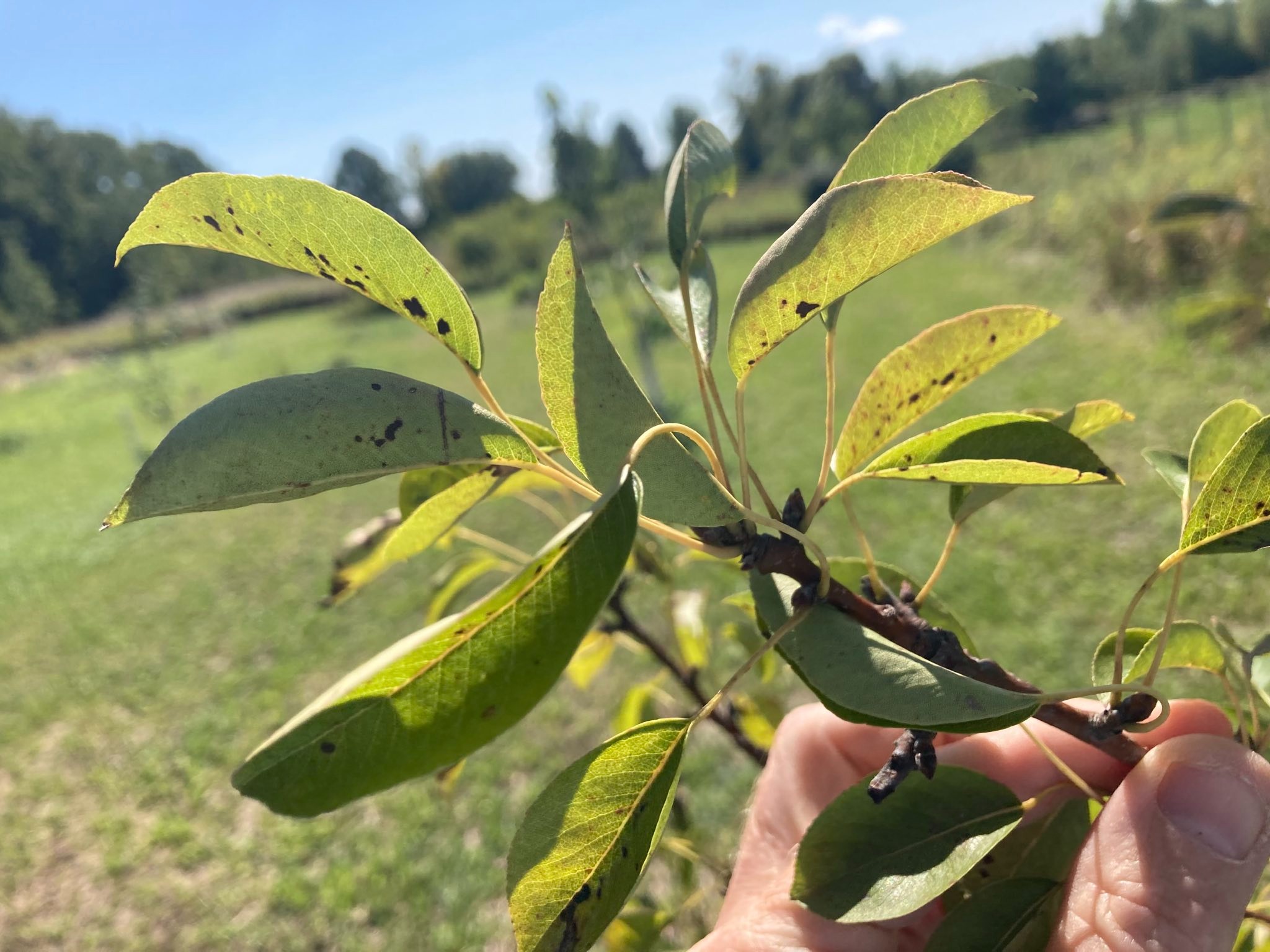 need some help with a newly planted (earlier this summer) moonglow pear - is this fabraea leaf spot?
