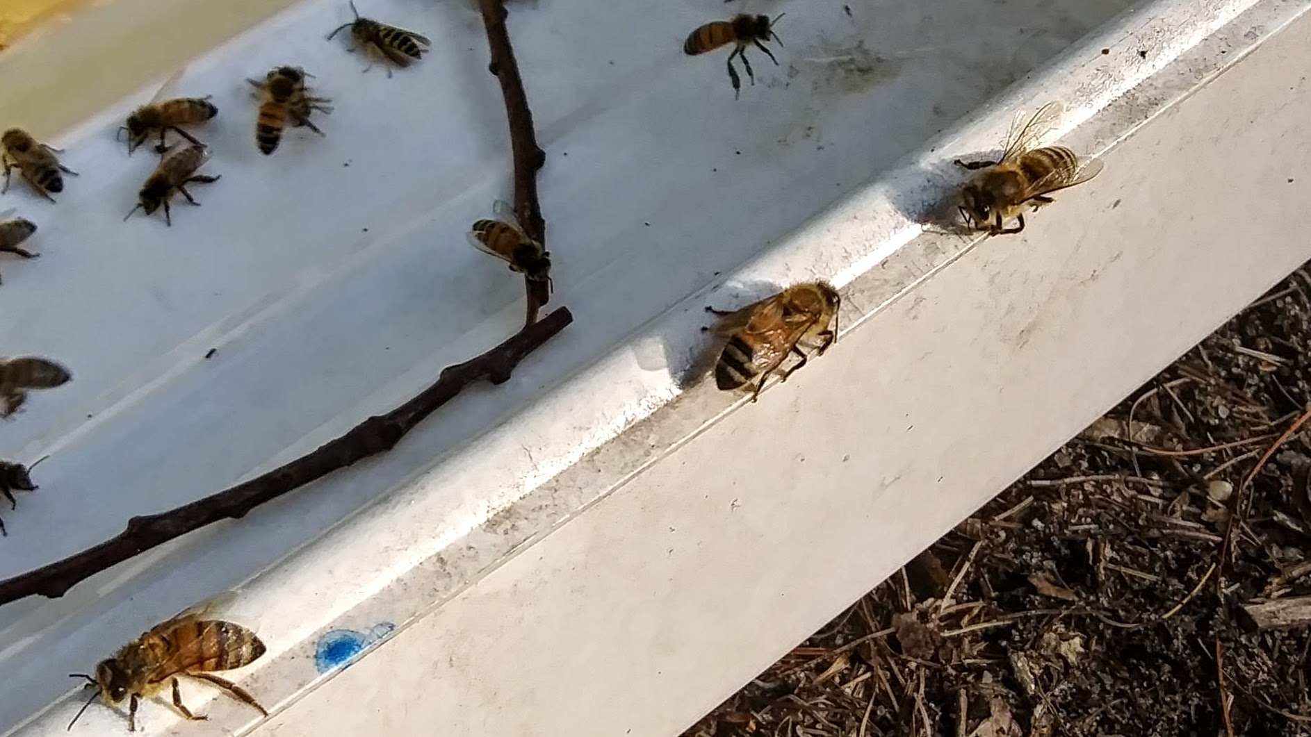 Apple juice. I just wanted to attract the yellowjackets. Didn’t expect to see all those honey bees so I thought I might be wrong… I did see some fighting. Now I can see the difference.