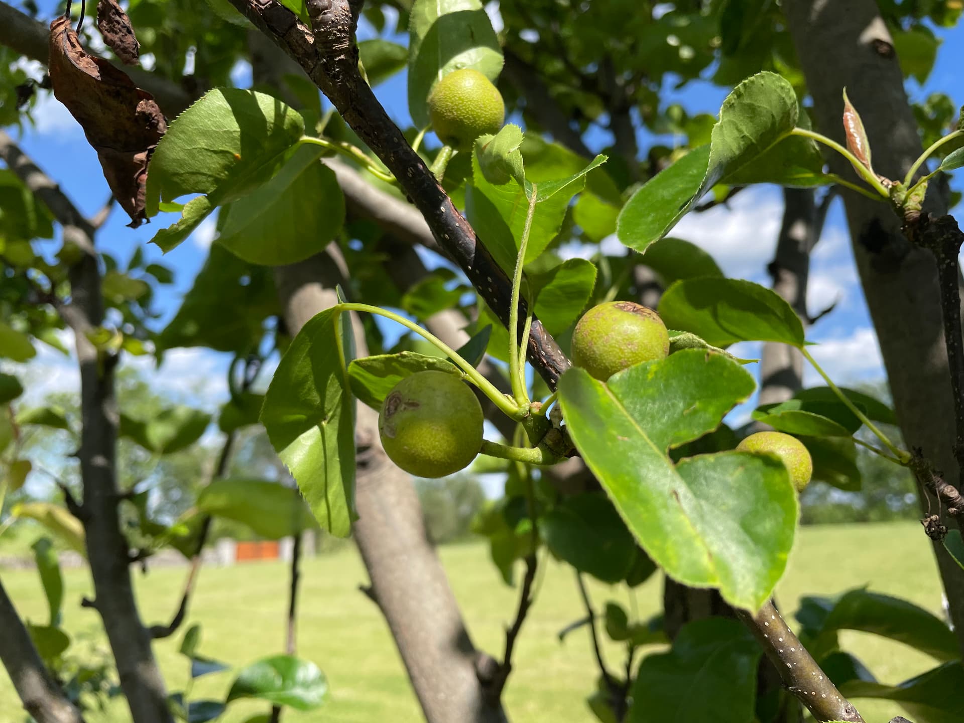 Hello, I have this issue from last season affecting several young pear trees, but only on honeysweet and flemish beauty varieties (there’s many other pear and apple varieties in the same area)