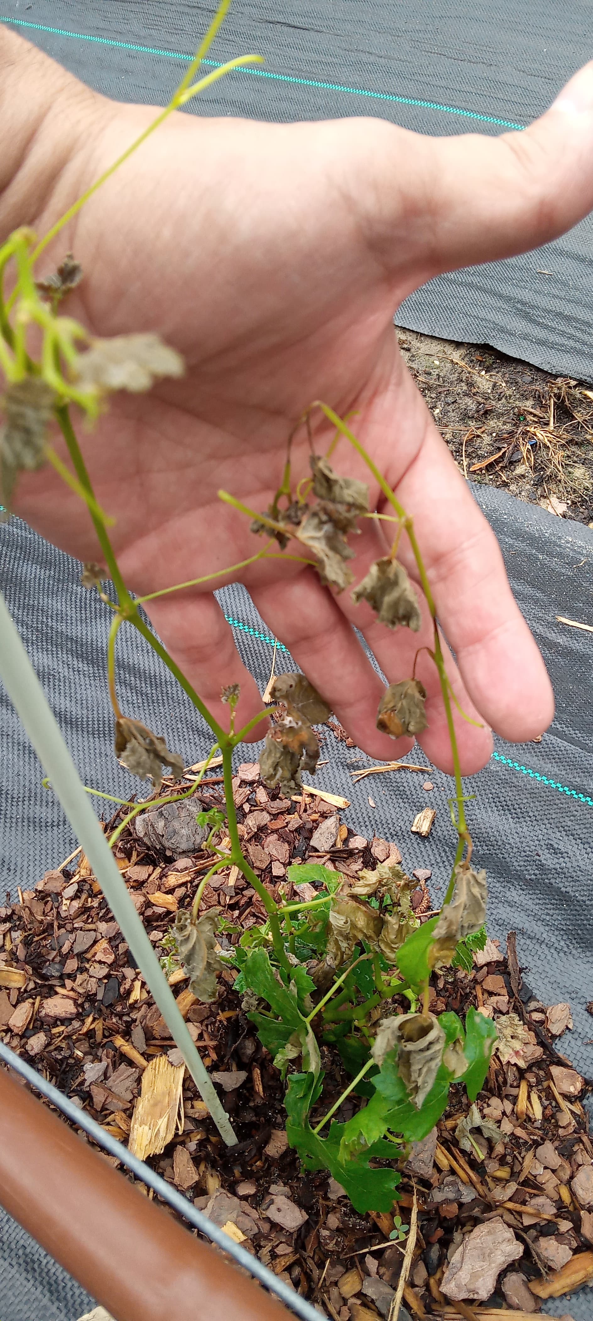 So I got home from offshore for a few days and found this on one of my newly planted grape vines.