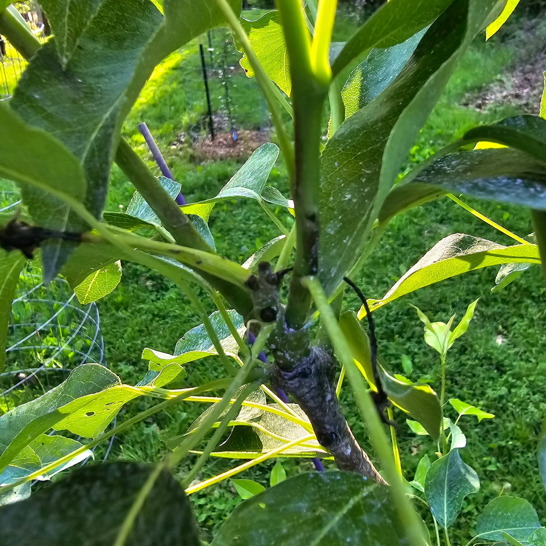 Does this give fireblight vibes or just general insect damage/ blossom drop? Harrow Sweet pear; the poor thing is directly downwind of my neighbor’s long row of Bradford pears. The second picture is on my burgeoning central leader.
