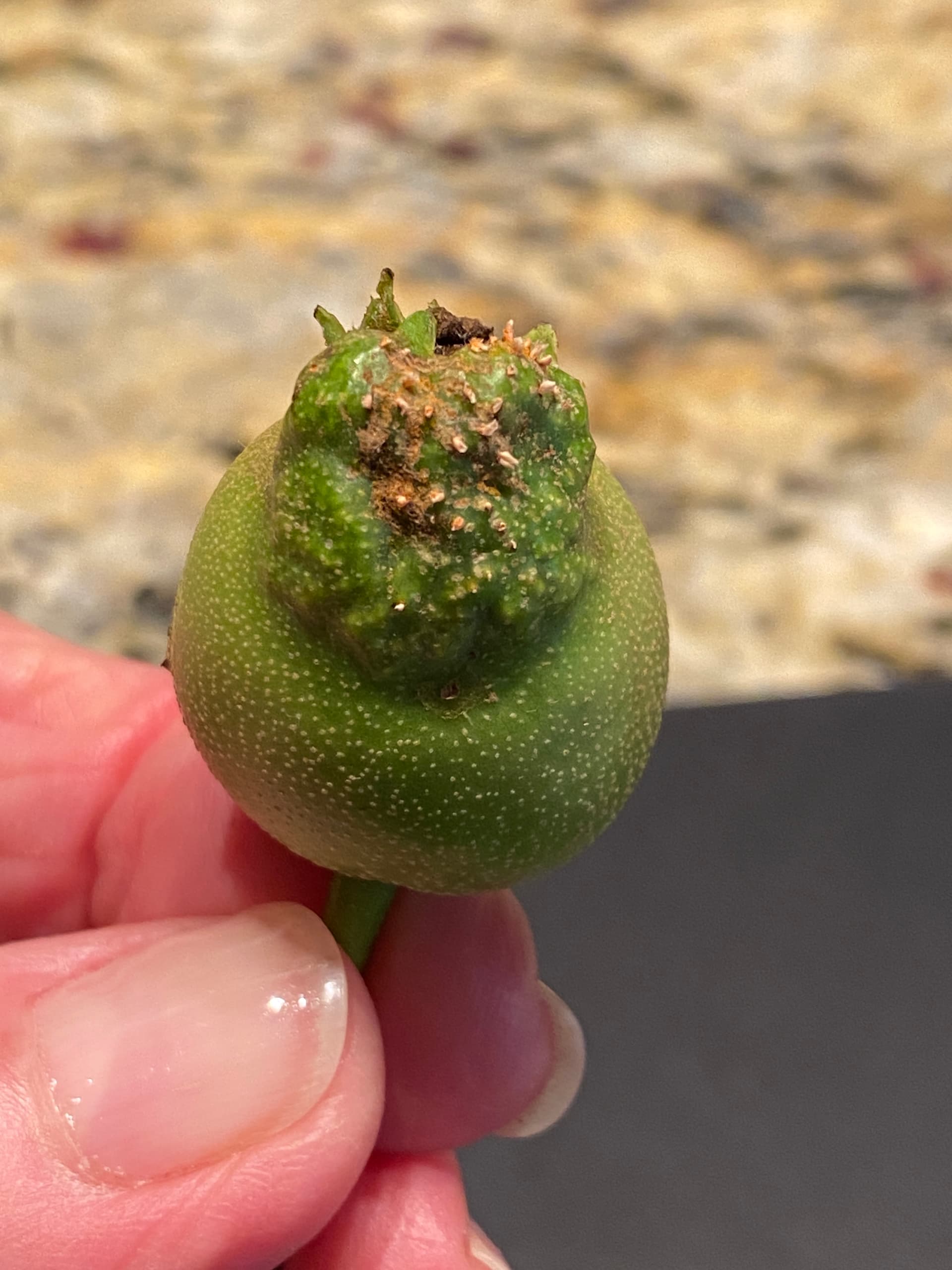 This was growing on the end of one of my asian pears. What is it . . . why is it . . . and what should I do about it? (If anything.)
