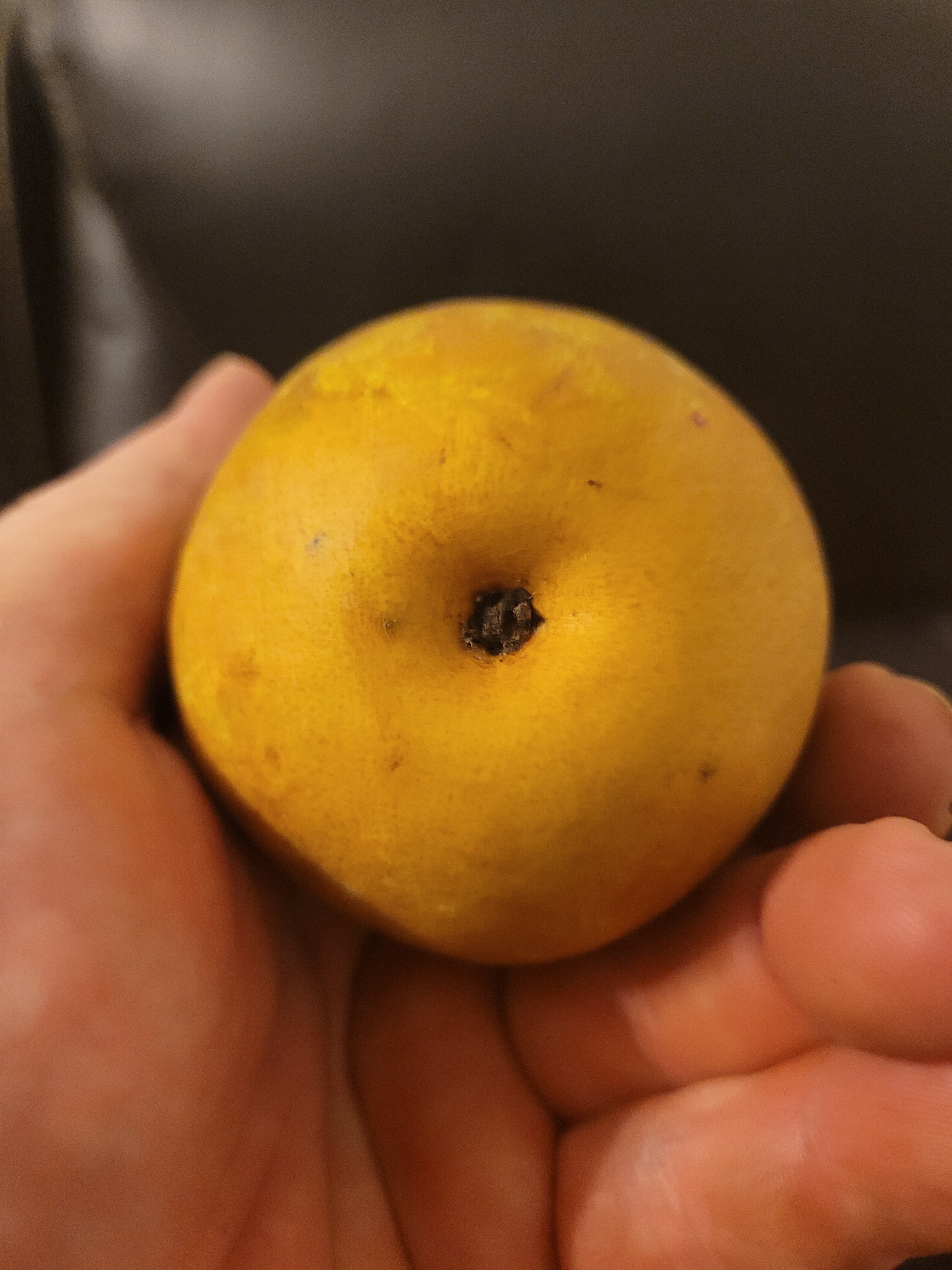 Ate my first one a couple weeks ago. It started to develop some rot in the fridge so I ate it crunchy. Very sweet. Tasted kind of like a bosc at that point. I can imagine a perfectly ripened one would be awesome.