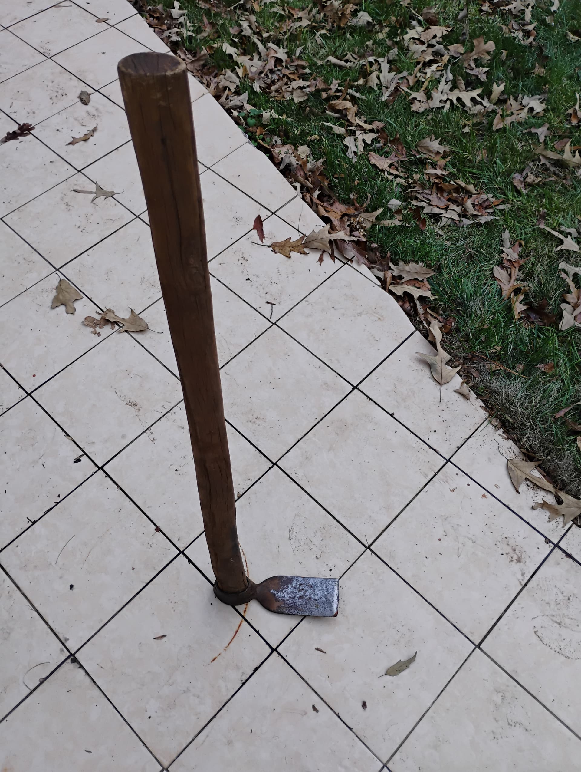 The mattock pictured above started life as a cutter mattock. I cut off the axe side of the head once I discovered how useless it was for cutting roots (I already had a dedicated root chopping axe which excels at the task) and I rived out a wooden handle much longer than the 36 inch ones that they come with at the store (mine stands as high as my sternum), which allows me to work without having to bend over as far. I also own an SHW root hoe, but I prefer the more narrow mattock head unless I am trying to move a lot of soil.