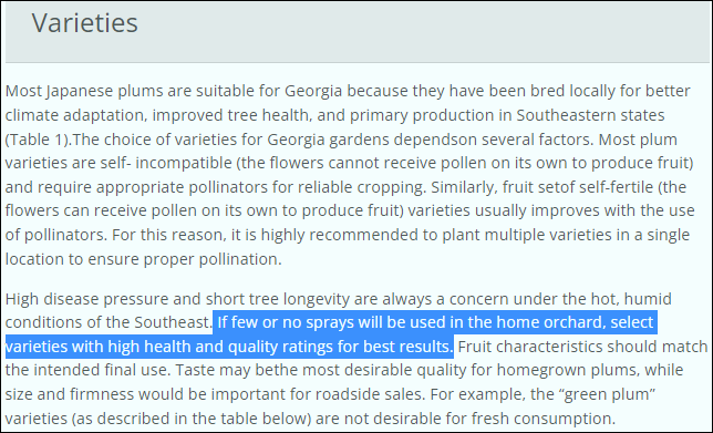 Now that I have decided to give up on Peaches (removed all 3 trees a few weeks ago)… my mind is drifting back to Plums again. Got rid of peaches because of pest (OFM) and disease (BR) issues… eventually just got to be too overwhelming – and I “do not spray” which makes those pretty much impossible to overcome.