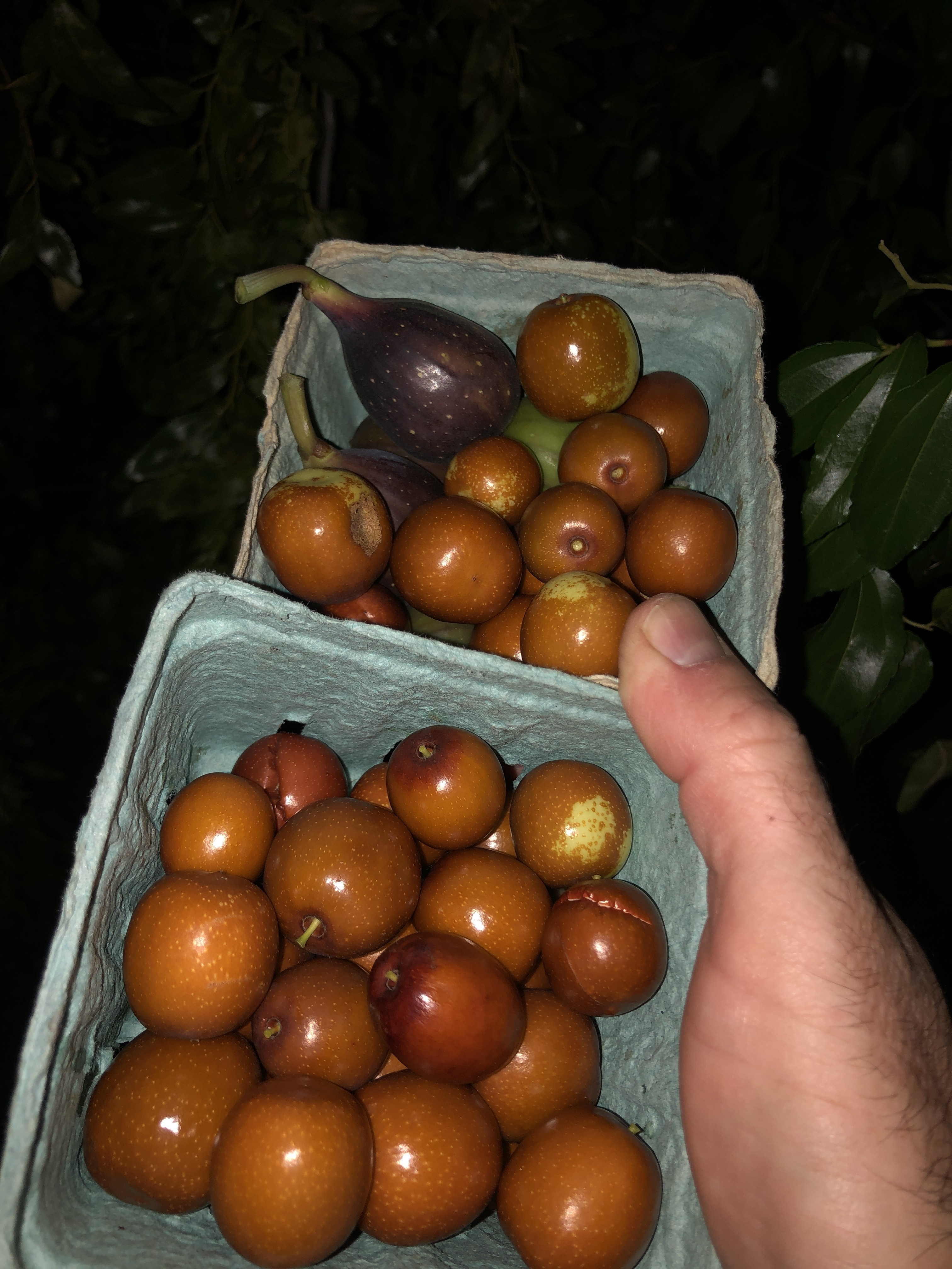 I saw one fruit with 3 yellow jackets on it. I came back after dark, expecting them to be gone, but it seems like they decided to camp out on the spot and were still there. The other day I picked a Sugar Cane that was burrowed into (on the side away from me). When I felt a buzzing tickling my finger I tossed the fruit. I’m shocked that I didn’t get stung. Maybe it was too drunk on sugar to react quickly enough.