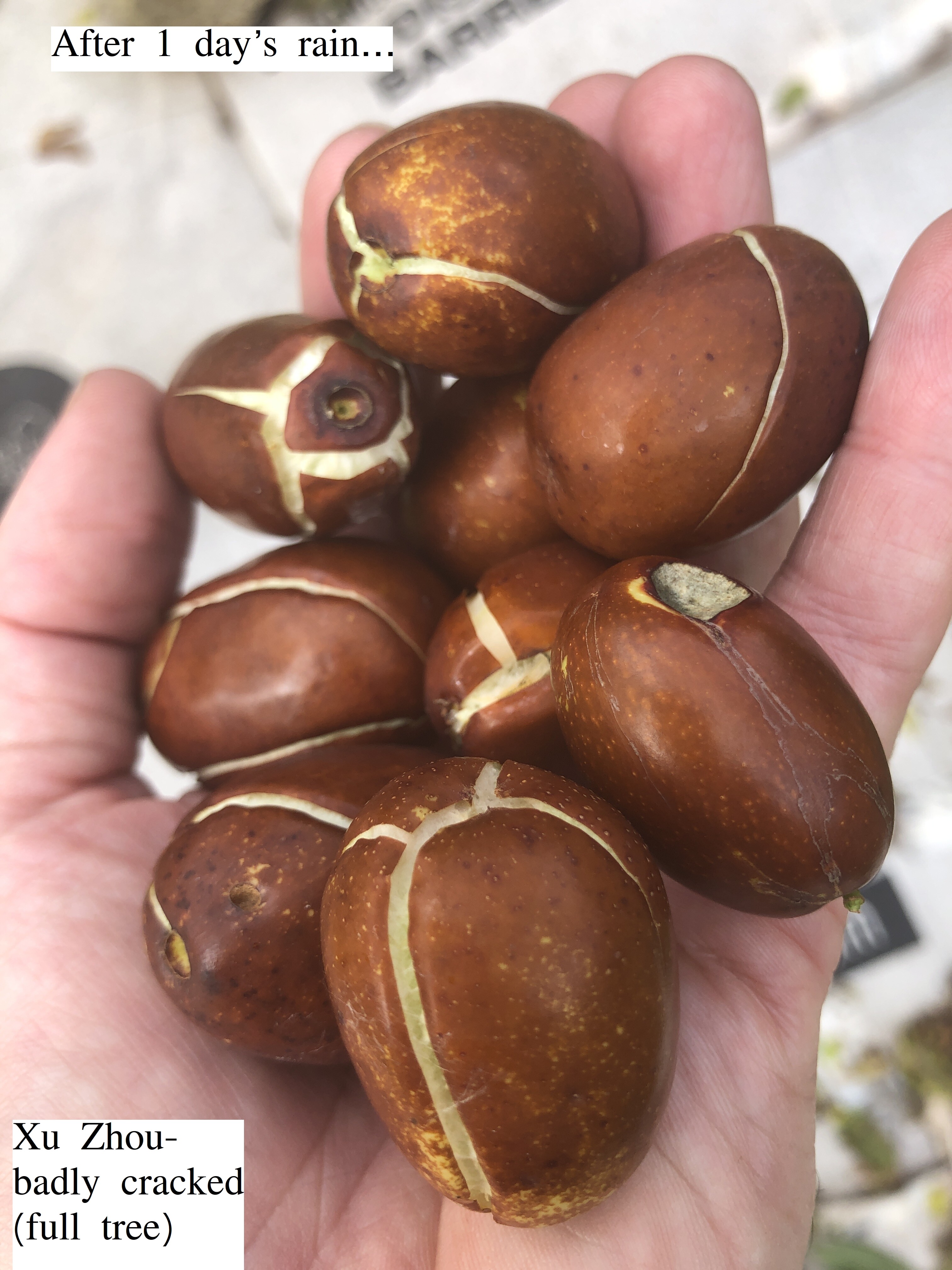 The rain from Monday caused cracking in some fruit. Sugar Cane and Honey Jar don’t seem too badly affected, but Xu Zhou was hit hard.