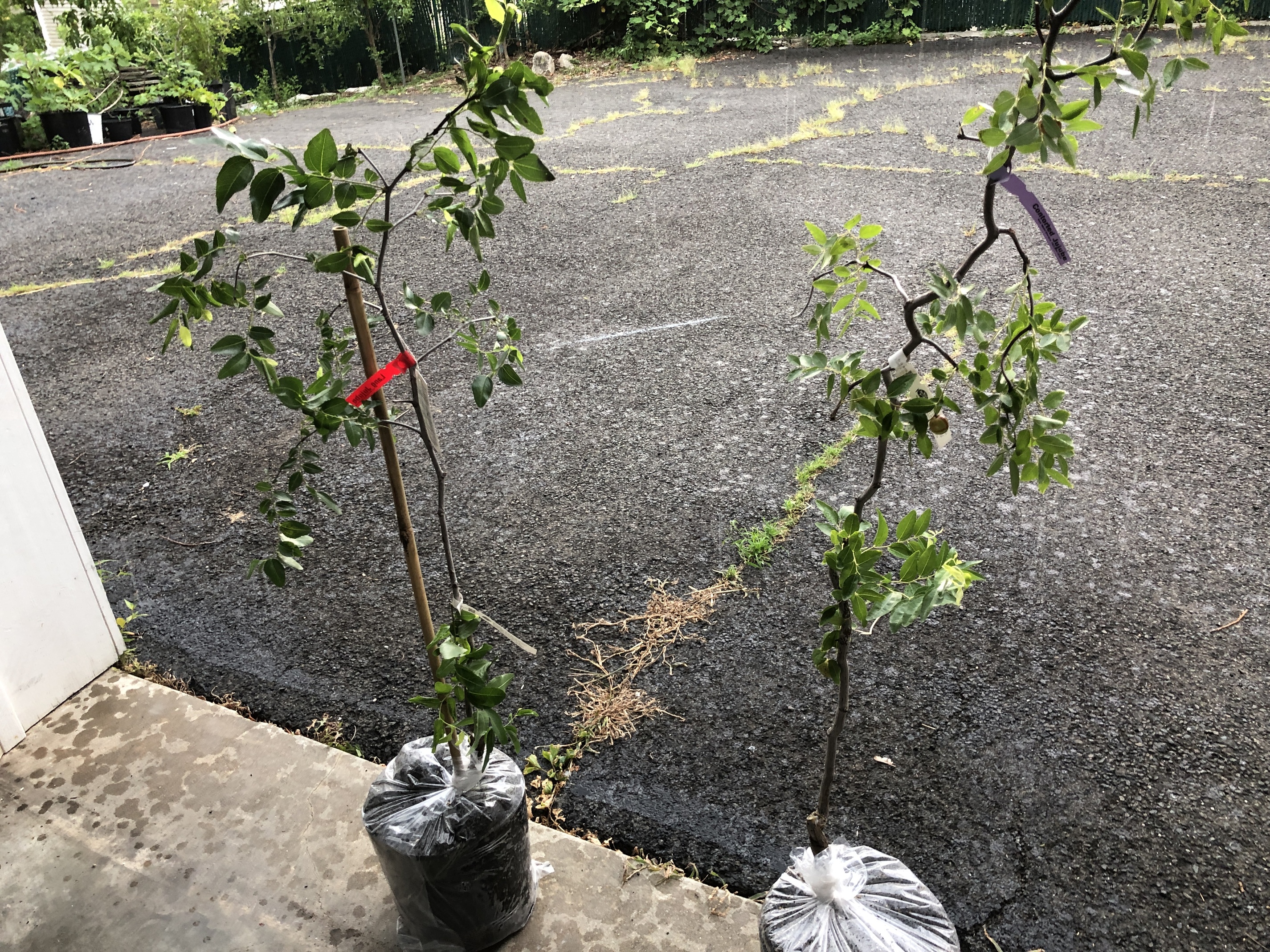 They weren’t cheap at $69.50 each + $40 shipping, but I should at least get them well established for grafting next spring. And I’ll leave a few lower branches of the original variety, as it’s always good to have a bit more pollination.