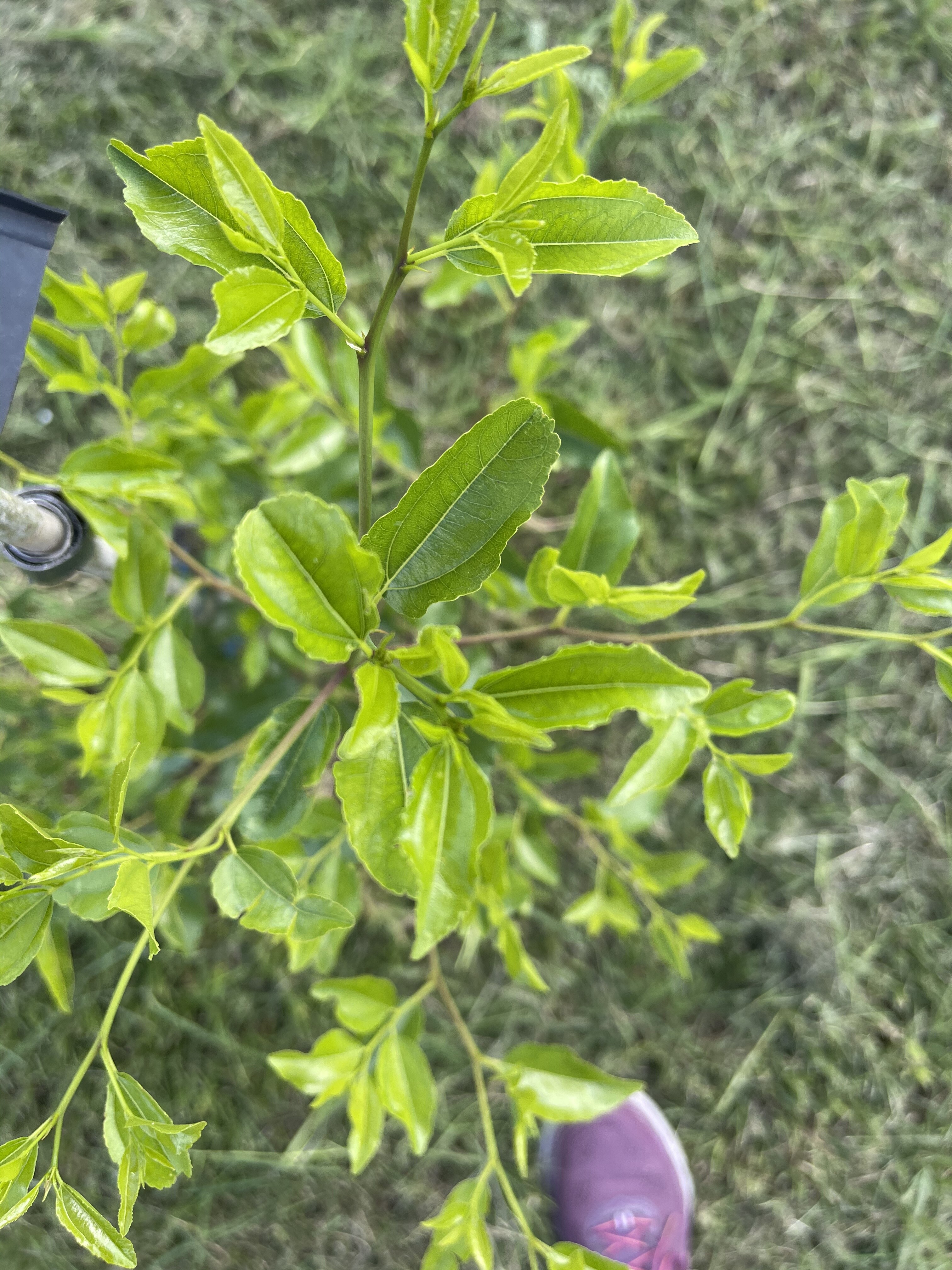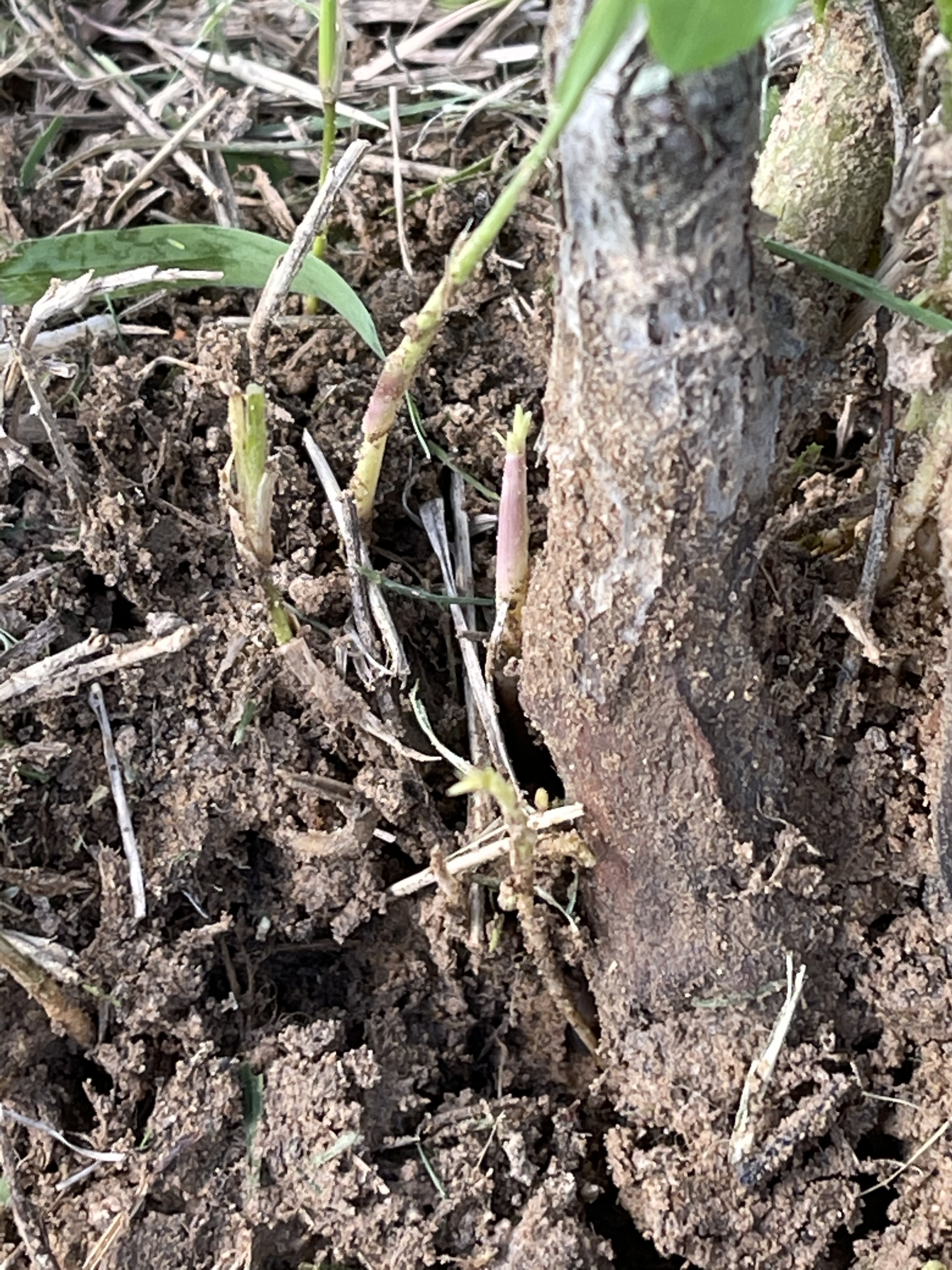 . So the jujube part of this is that I got out my weed eater to trim up the foot high grass around some of my trees. The little Massandra that died had suckers around it that I planned to let one grow to graft to and dig the others if possible. This is what I found growing around Massandra.
