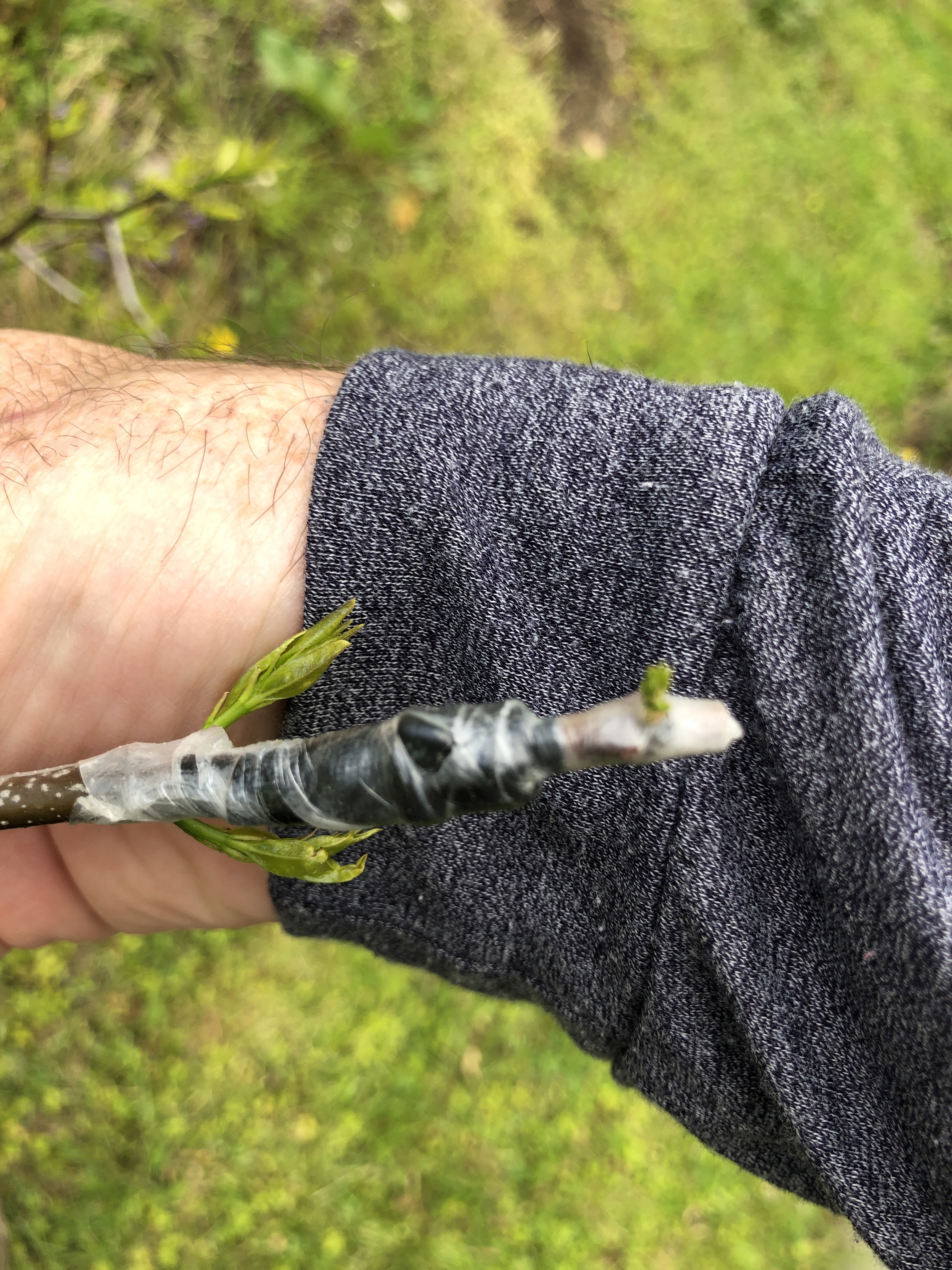 I did 99 grafts on established trees in my yard. So far, I’m up to 84 takes (85%). I also did a bit over 60 grafts on similar trees at rental properties. As of last check, I was around 67% on those, but that figure is most likely higher, as I haven’t gotten out to some of them for a week or more (though this time of year is pretty frequent due to the grass needing mowing…).