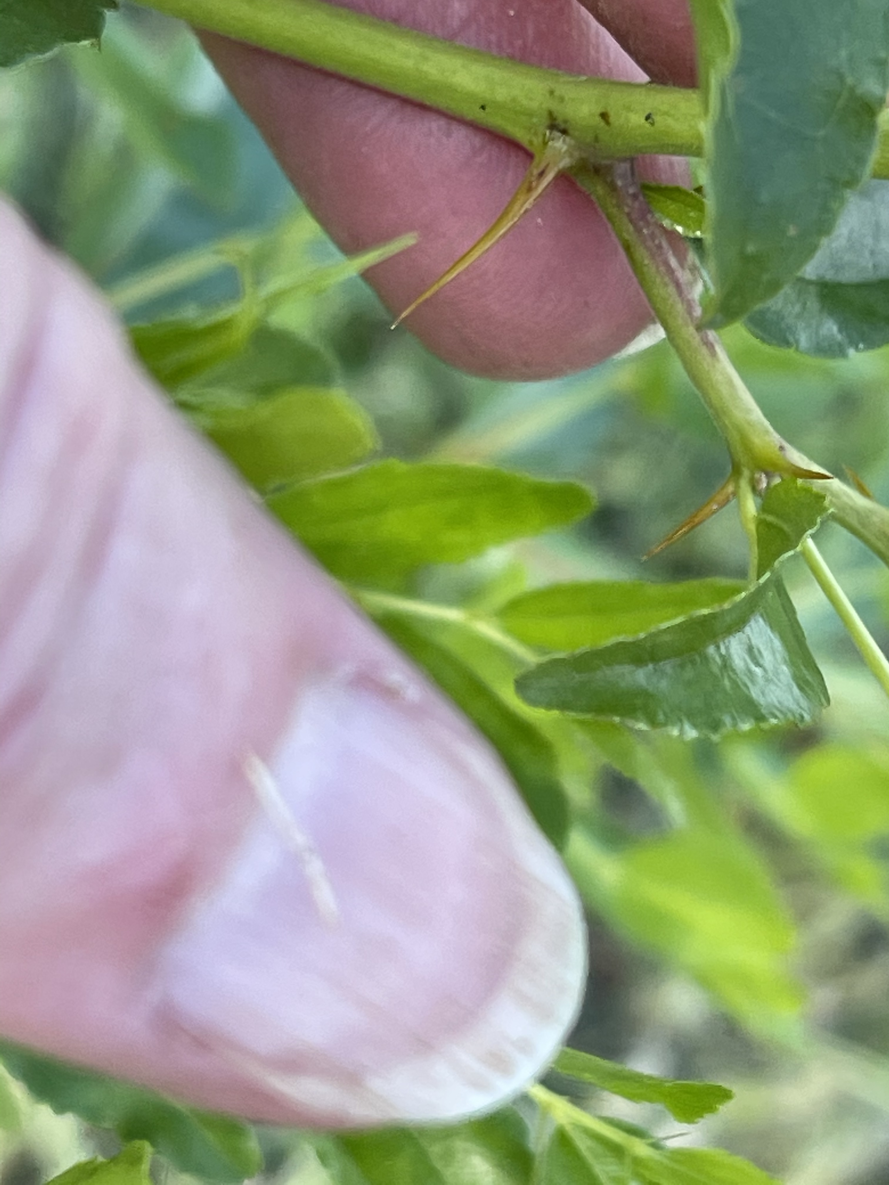 Smaller sucker and thorns: very short internodes, small light green leaves, spikes for thorns.