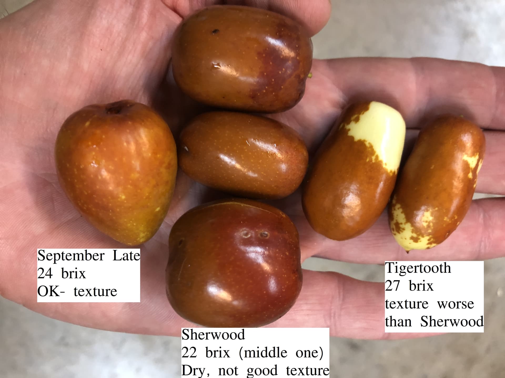 Most jujubes will meet the sweet requirement. Other than Maybe Texas Tart, which somehow doesn’t taste sweet, even at 25+ brix