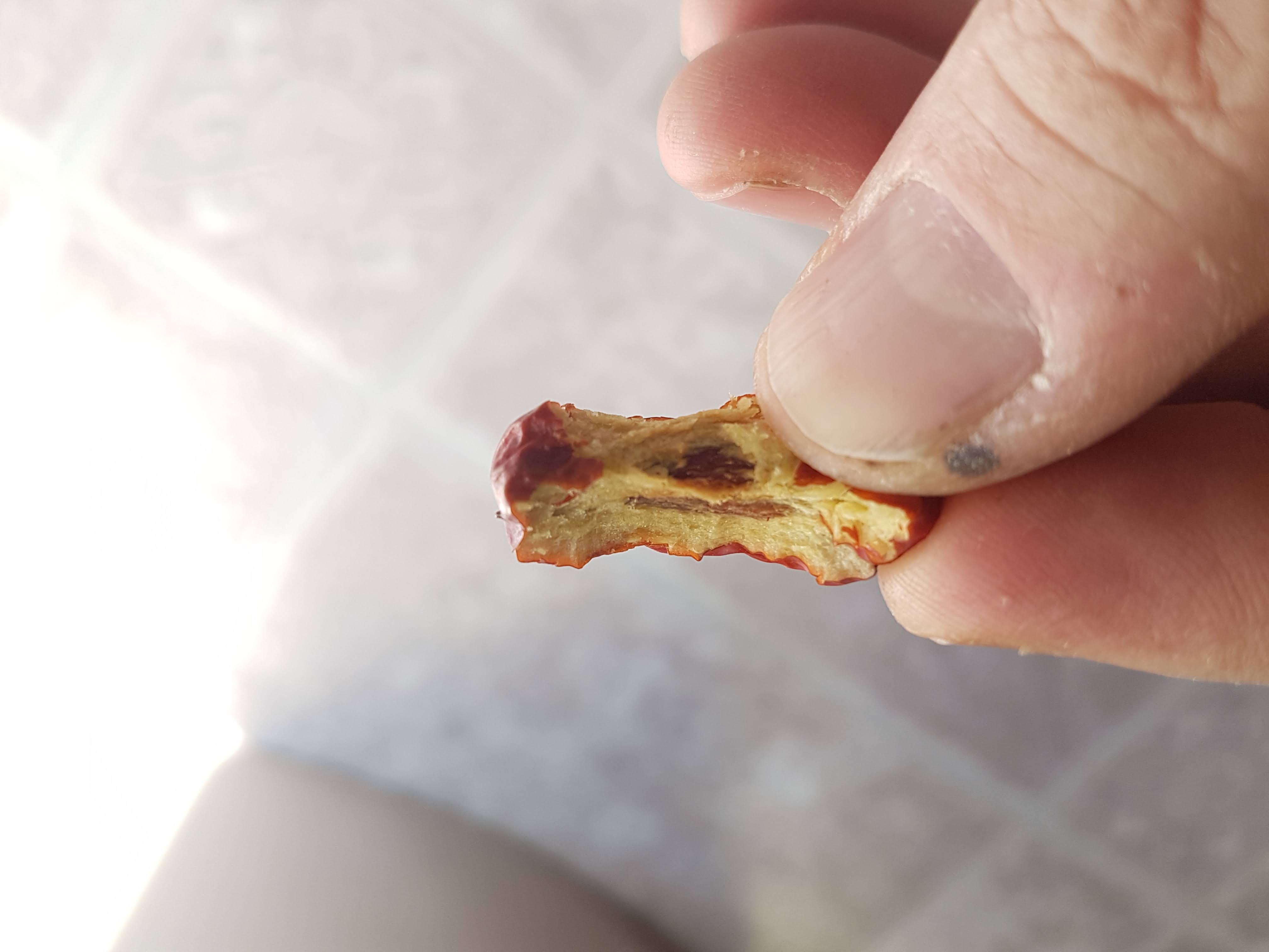 Even freshly cracked from the rain, Sherwood isn’t all that juicy, but 34 brix is pretty high and it has a decent crunch. OK, not great,