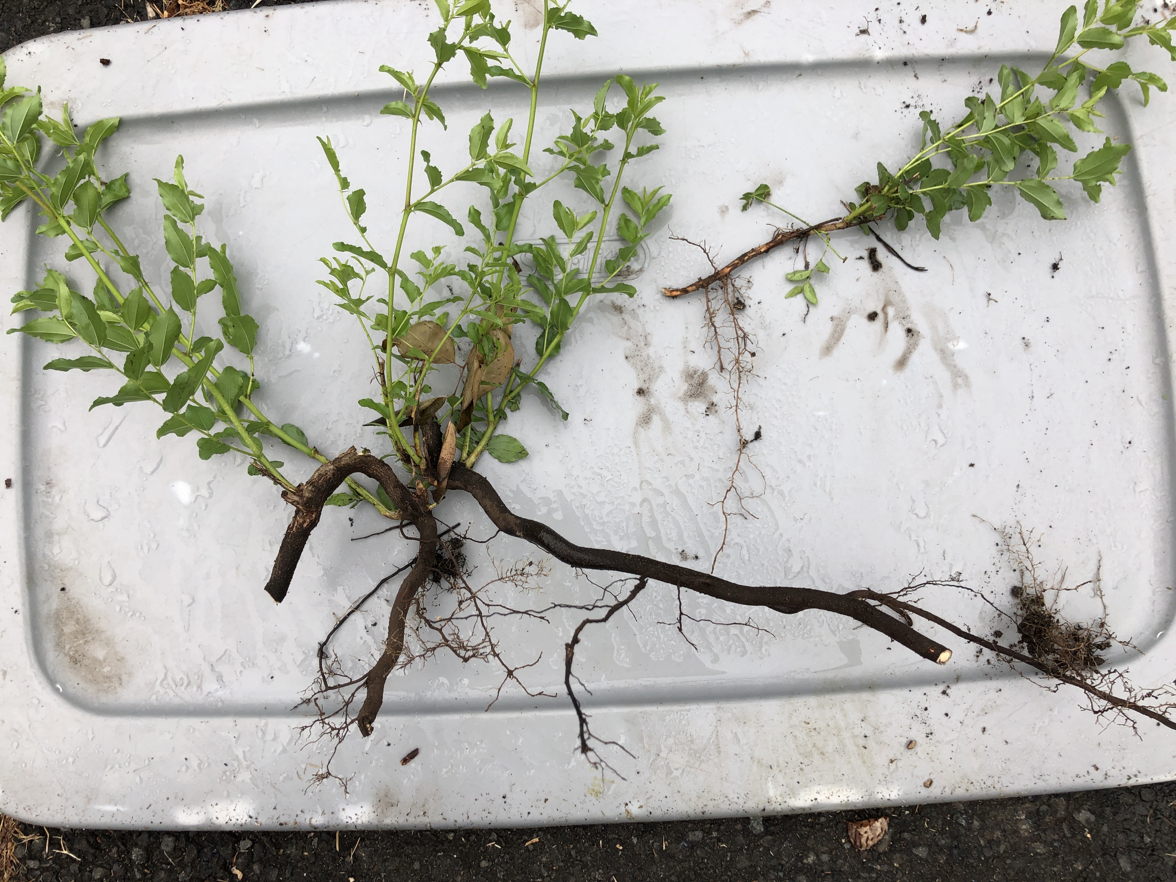 Here is a bifurcated rootstock that I grafted V. Candy to the left and V. Spicy to the right. Because of the low graft this will most likely turn into a bush like set of trees.
