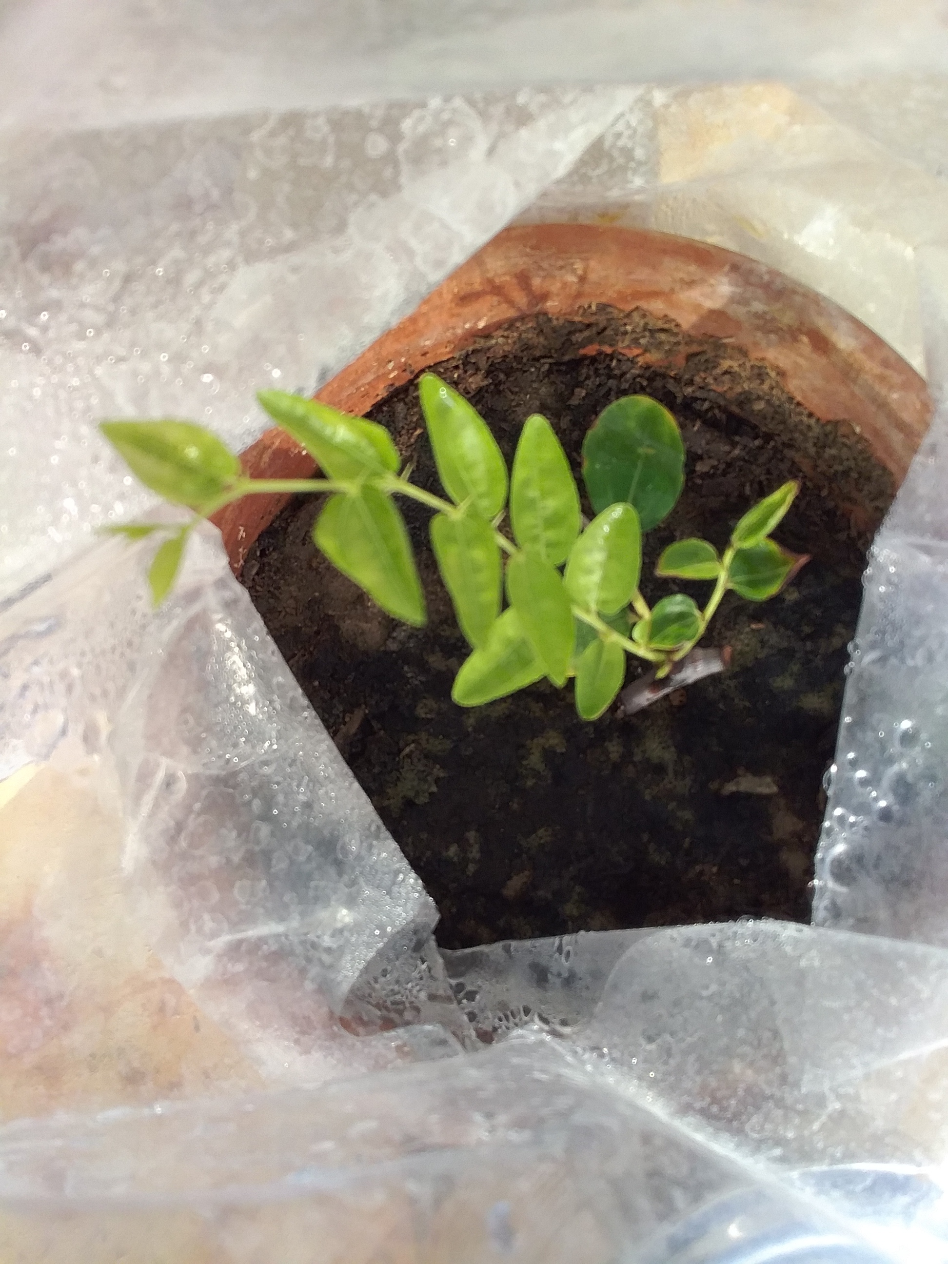 Just a few weeks ago, I yanked out a few suckers and they had just a bit of root on them. So I potted them up, kept them watered and put them in a spot with only a bit of morning sun. To my surprise, they both appear to have made it.