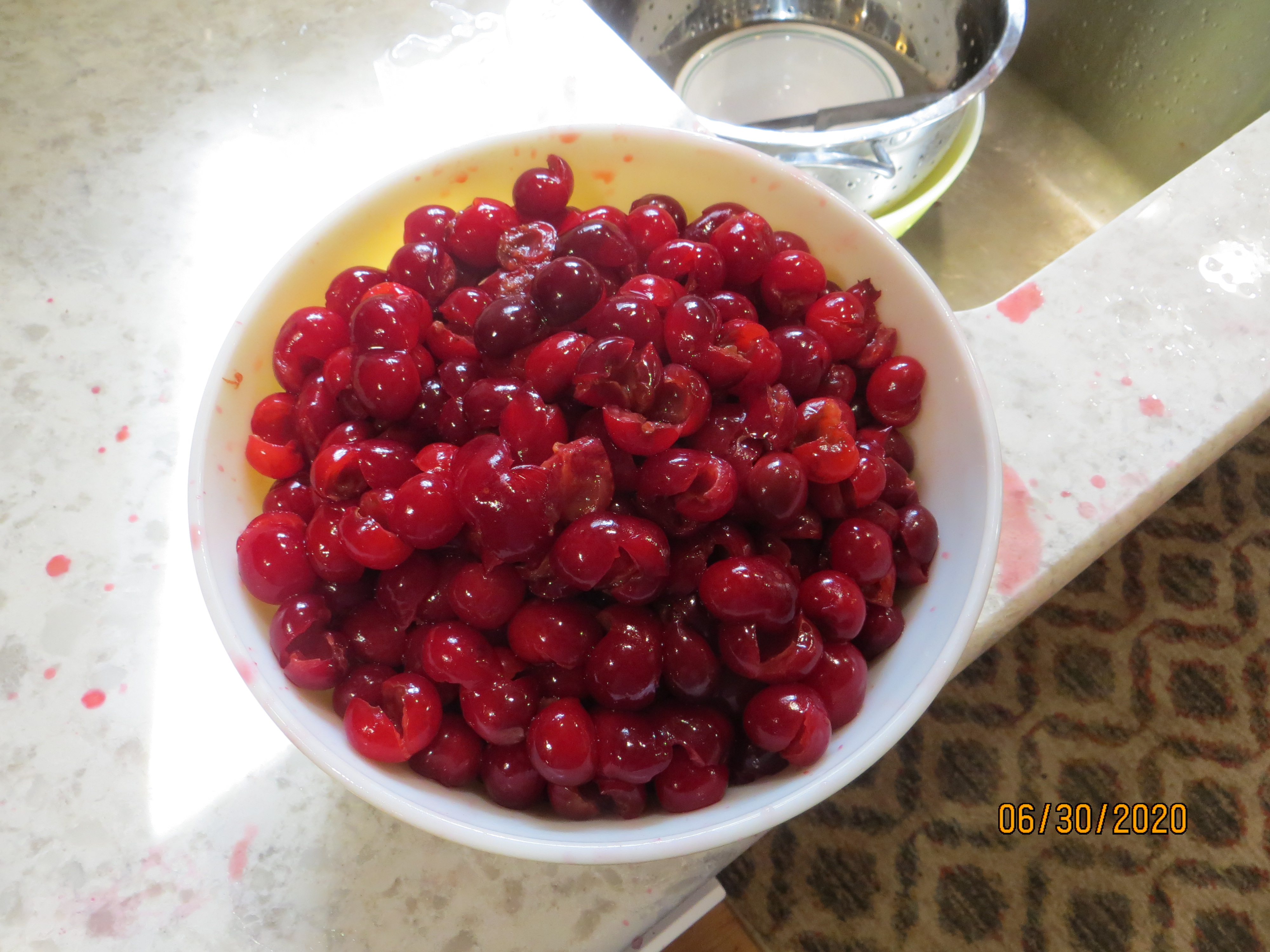 I picked my Juliet cherries today. They weren’t as ripe as they could be, but the birds were causing a fair amount of losses and my netting is being used elsewhere. I’ll be making jam with them tomorrow.