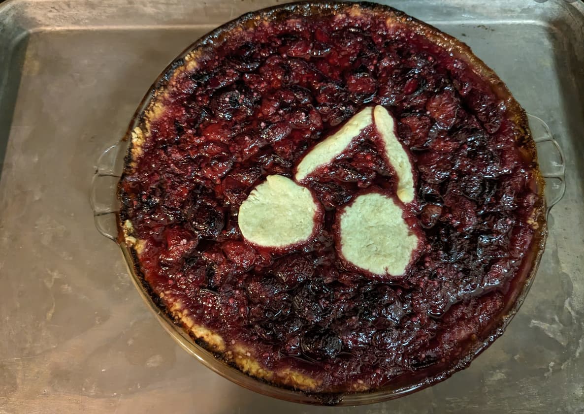 Here is a pie my wife made a couple weeks ago with the crank pitter, with me doing the pitting/cranking. It’s not too ugly, imo.