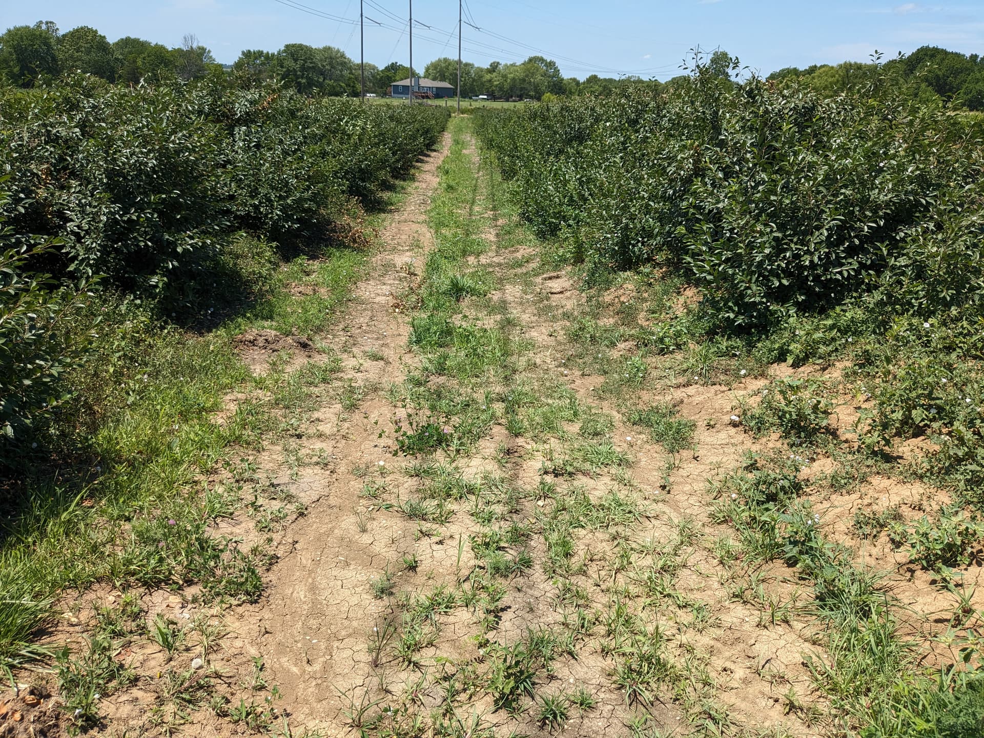 So I just started using a directed pre-emergent herbicide during dormancy, then directed herbicide sprays at the weeds (after harvest). It doesn’t matter if you get some herbicide on the suckers because they won’t die anyway. I’m talking about non-systemic contact herbicides, not something systemic like glyphosate, which would probably kill not only the suckers, but the mother plants as well. So far, I’m reasonably pleased with the weed control.