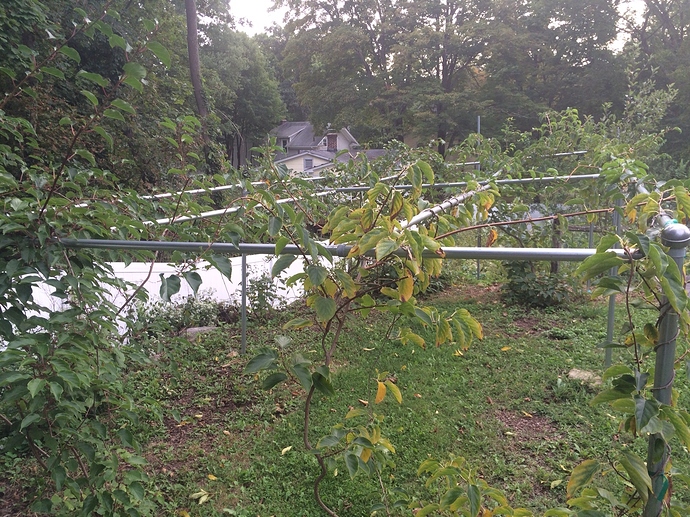 I’ve got an Issai (supposedly self fruitful) to plant this year (it’s in the ground but just in a temporary spot because it came earlier than we were ready for it) and have been talking with my husband about him making an arbor for it. We were thinking using landscape timbers for corners, 2x4 for cross braces and cattle panel pieces attached to the timbers and top. Something like 7 feet tall, 6 feet wide, 4 feet-6 feet deep. I was figuring we’d plant another kiwi on the other side of the arbor next year, either another Issai or a male. But now I’ve read a lot of folks are training their kiwis on pipes or strong wires and pruning/training them like grapes. Does my arbor idea sound workable? I would guess I might need to tie some of the branches to the cattle panel area or weave them through a bit as it grows (or does it attach with tendrils?).