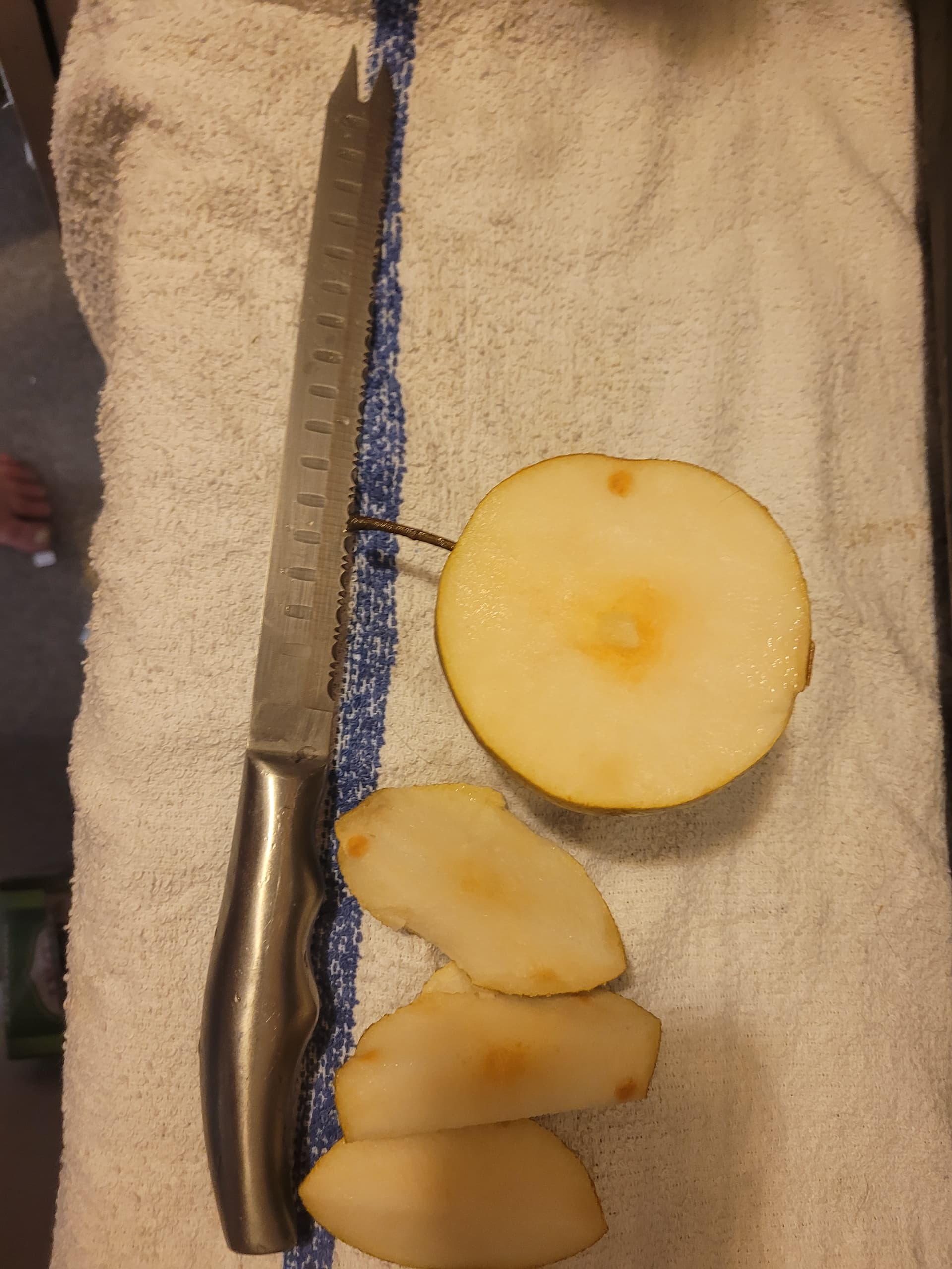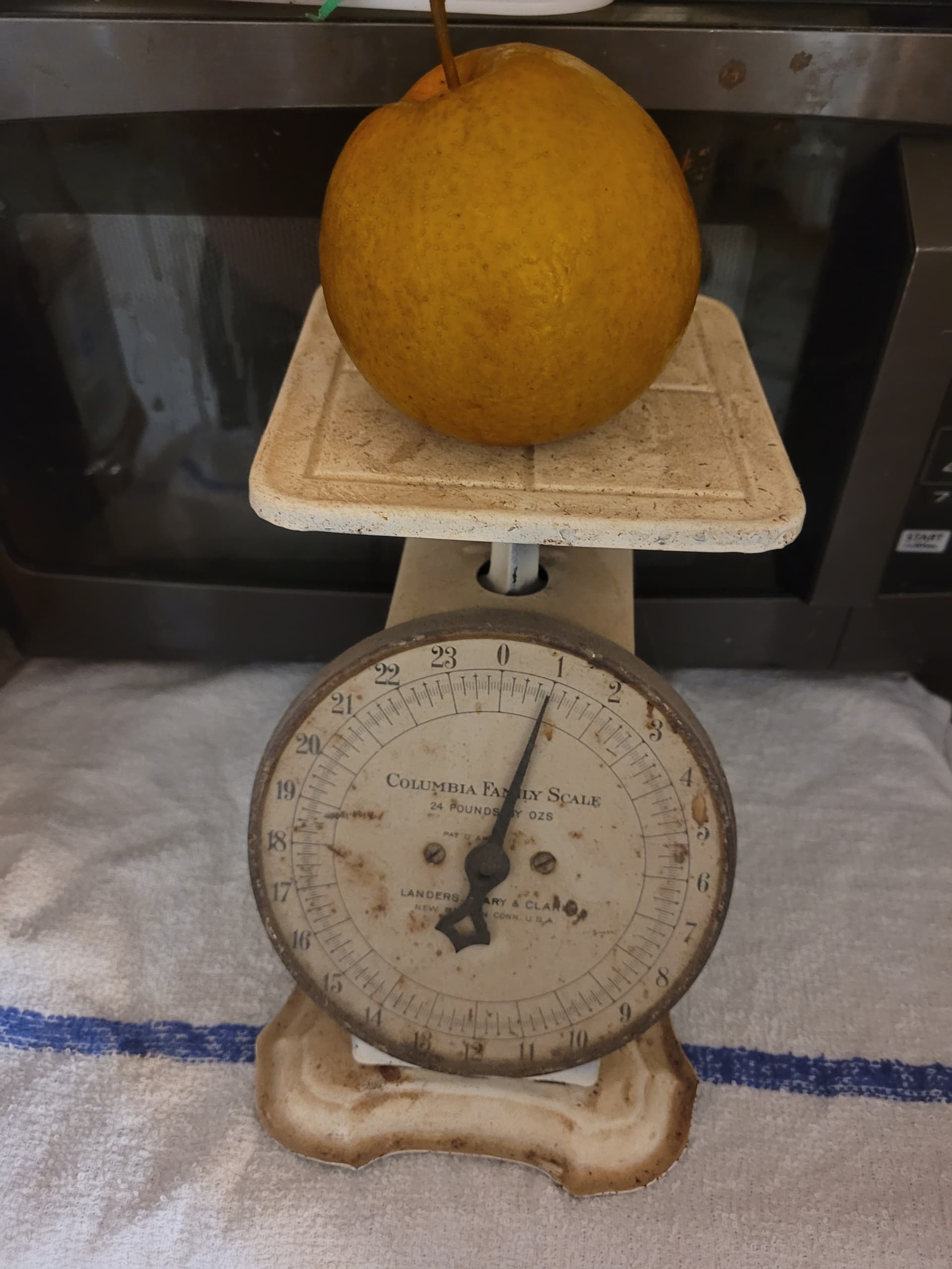 Wow, these are incredibly delicious! This is my last one and the smallest of the 3! I decided to pull out the scale because i dont think people realize just how big these are. Like i said, i did not thin them, but if i had 1 1/2 - 2 pounds, it would have been easily obtainable. @alan asked the question recently about big pears such as Turnbull , Charles harris, duchess d’ Angoulme, kieffer, etc. Which can all be large. Korean Giant can easily hit 1 pound+ with no special care. Atago currently holds the worlds record at over 6 pounds. Atago pear